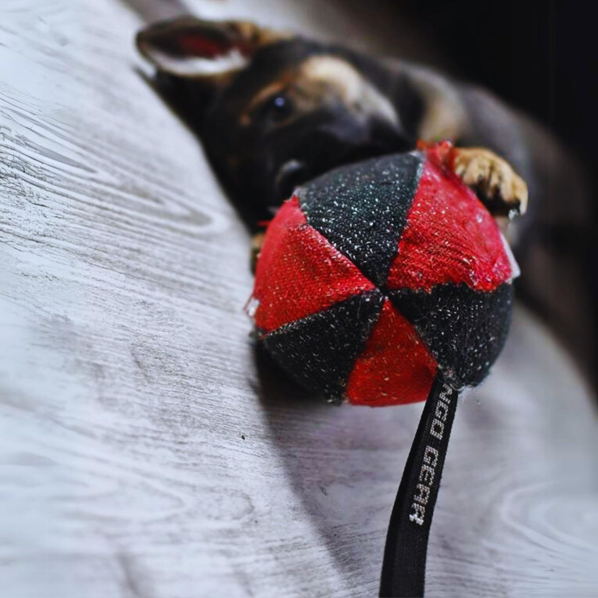 Dingo Gear Cube is made from Nylcot material, a blend of nylon and linen, also known as French linen or ring material. This fabric is highly resistant to tearing—when a dog's teeth grip the toy, the material expands and then returns to its original shape once released