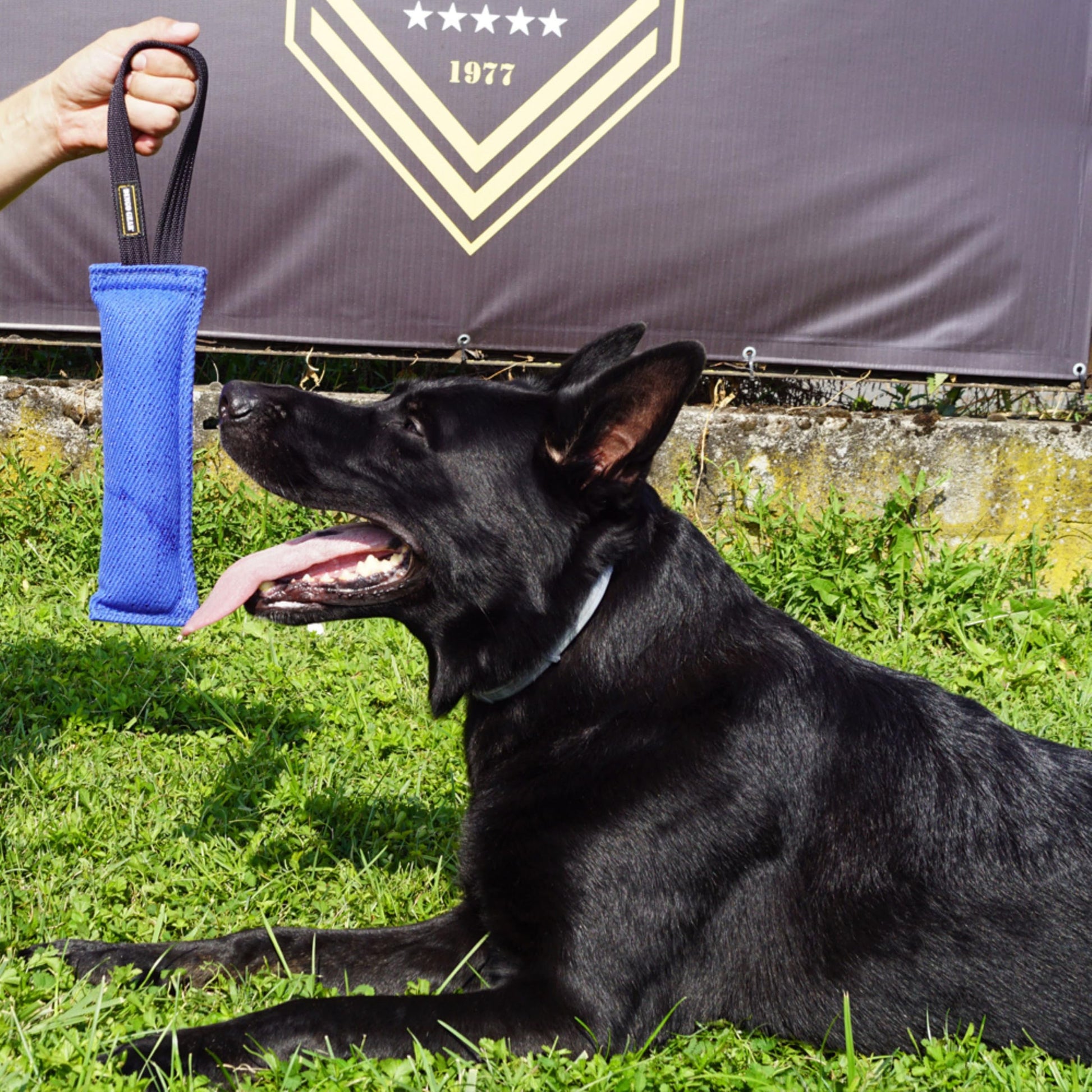 The french linen toy is built to withstand the toughest tugs. It boasts exceptional strength while featuring a comfortable handle, ensuring a secure grip that keeps you in control, even during intense play sessions. Perfect for activities like agility training, k9 dog training, protection work, bite training, and dog behavior modification.