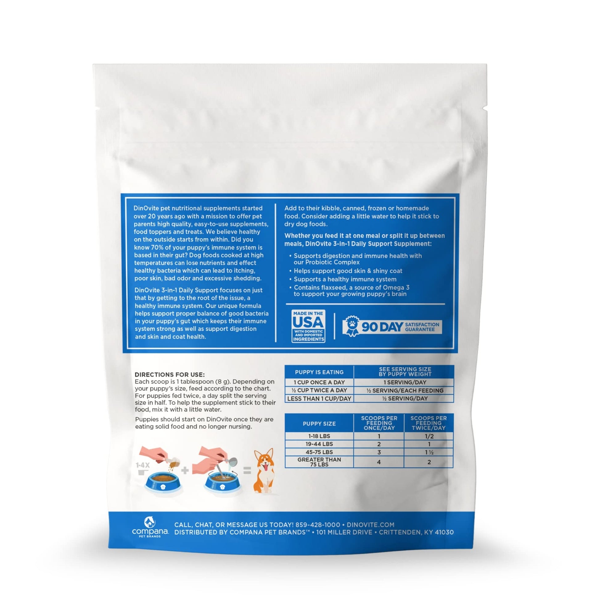 Dinovite 3 in 1 Probiotic for Puppies, Skin & Coat, Digestive Health & Joint Relief, Dog Food Toppers, Salmon Oil, Glucosamine, Allergy Relief & Itch Relief Skin Care, 90 Servings (Puppy)