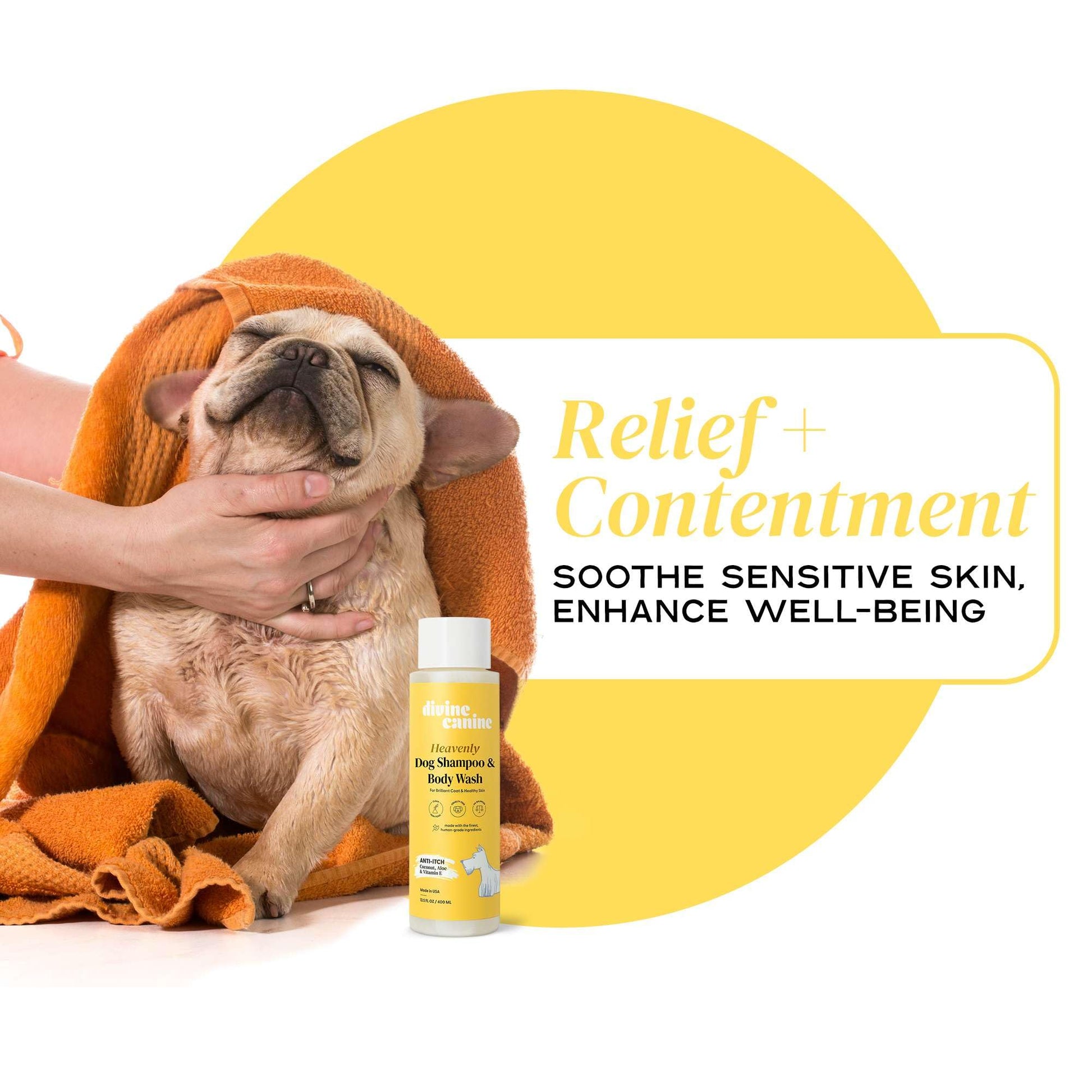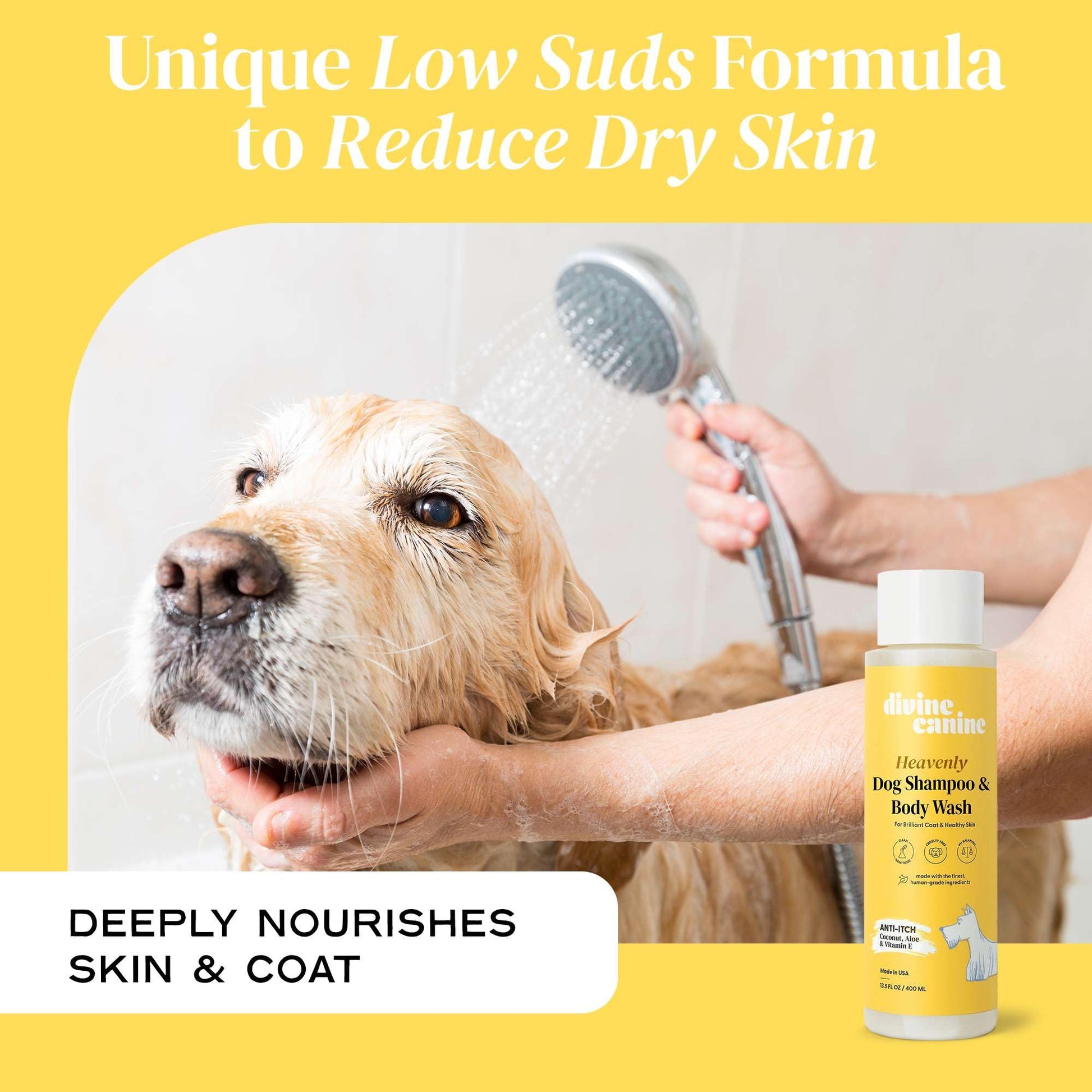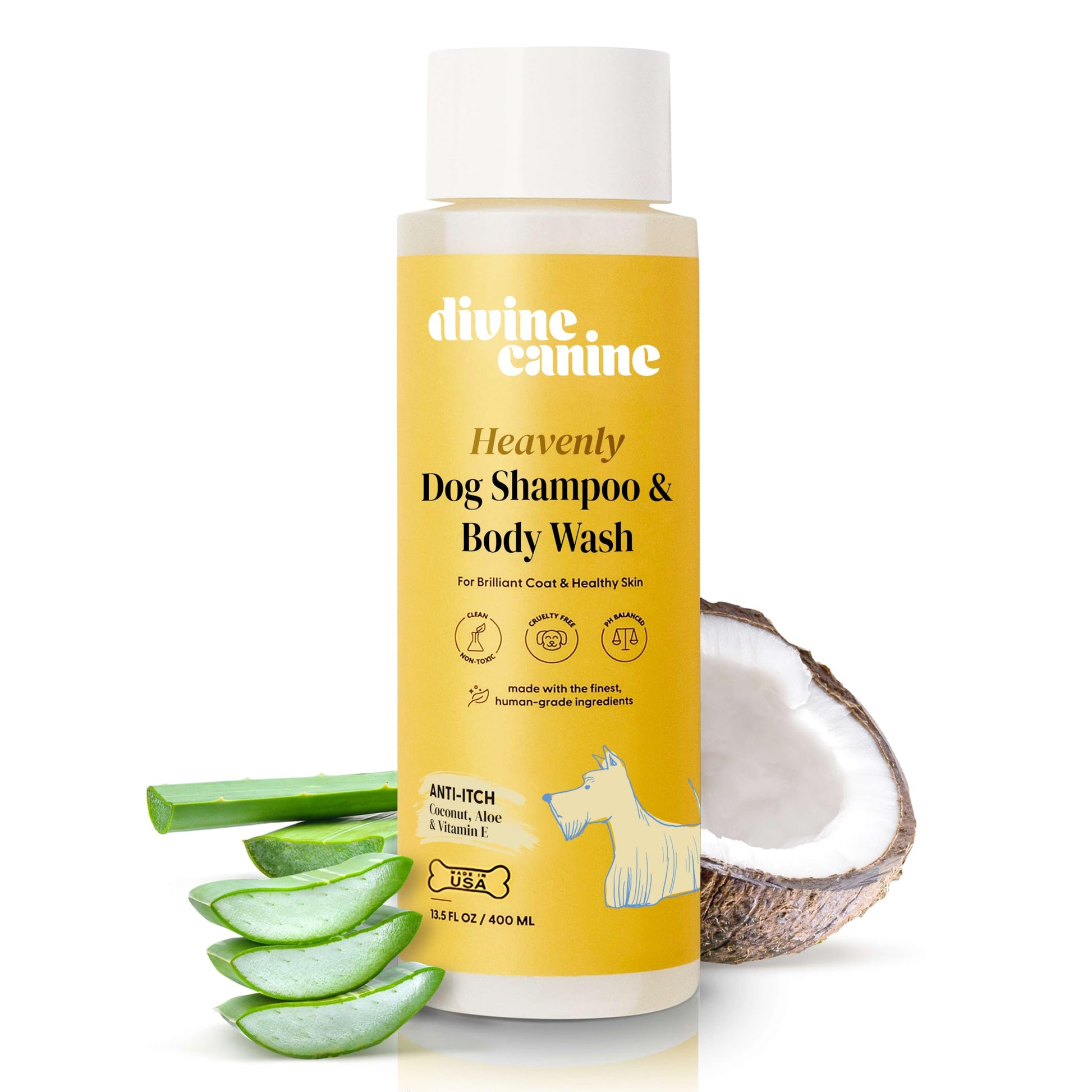 Divine Canine Heavenly Dog Shampoo & Body Wash - Anti-Itch - Dog Shampoos - pH Balanced Conditioning Dog Bath Blend with Collagen, Aloe, Coconut Milk, Vitamin E - Soothe Itchy Skin & Coat - 13.5oz