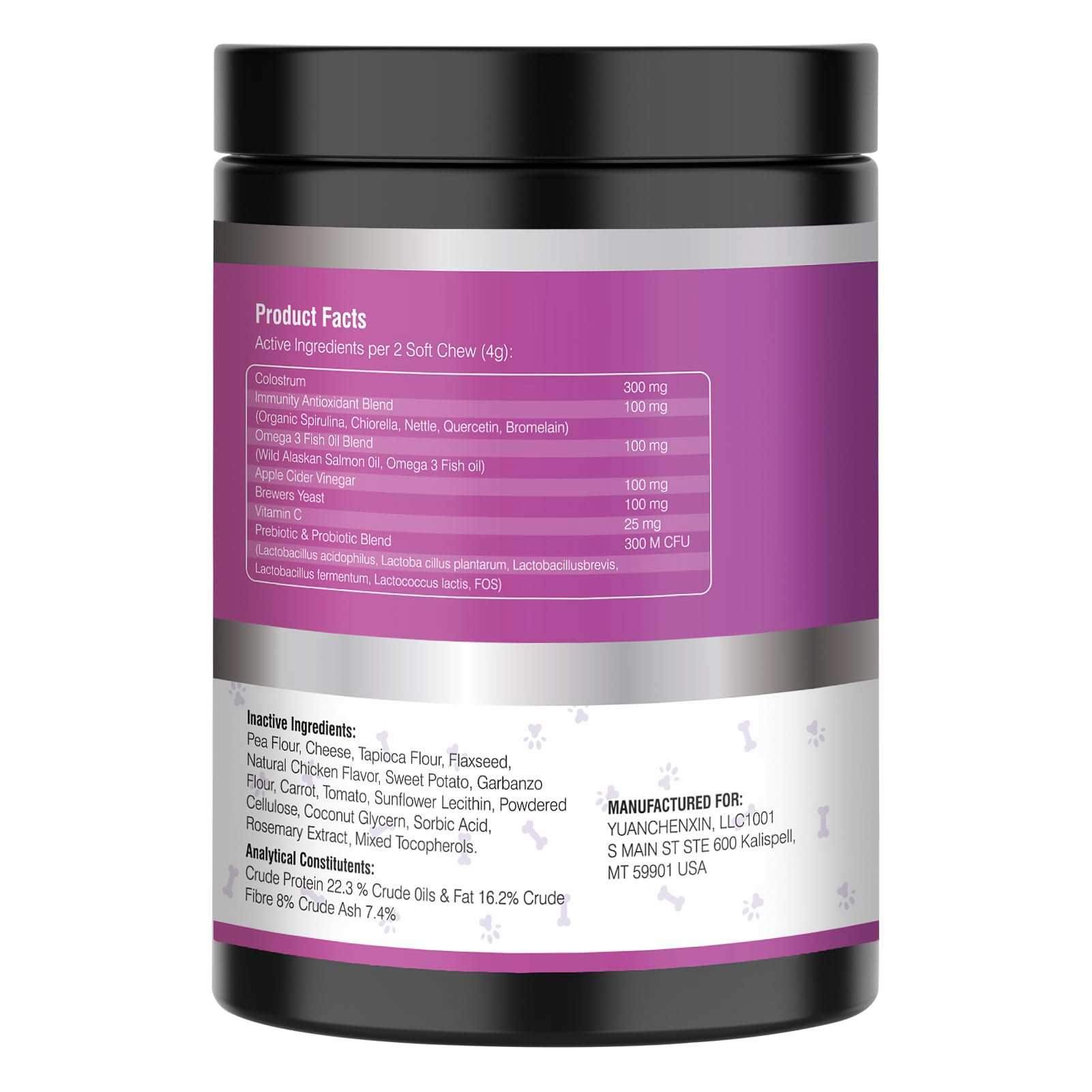 - Support Skin Health & Seasonal Allergy Relief for Dogs: Combat seasonal allergies and boost dog's skin health with dog itch relief chews. Colostrum for dogs calm histamine responses, and natural wild alaskan salmon oi packed with Omega-3s fatty acids (with EPA and DHA) for a vibrant skin and coat and dog itch relief. Pet allergy chews keep your furry friend healthy, and ready for every adventure. Perfect for anti itch for dogs, anti itch dog chews promote vitality while soothing skin irritations