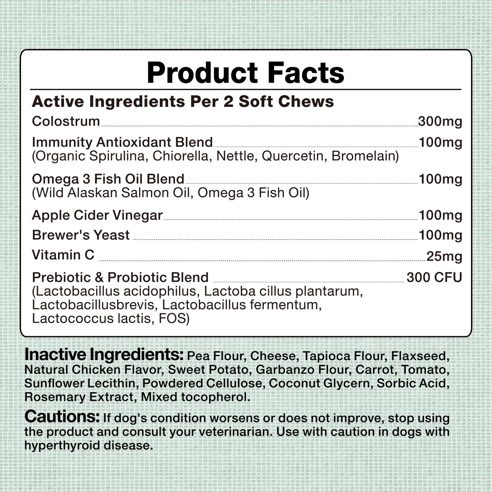 - Skin & Seasonal Allergy Care: Colostrum calms histamine responses; natural wild Alaskan salmon oil (Omega-3s, EPA/DHA) enhances skin/coat health and relieves itching, ideal for seasonal allergies.