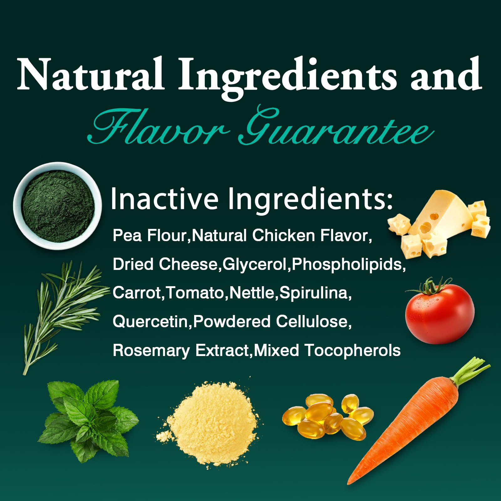 - [200 Pieces, Eco-Friendly Packaging]Chicken&Cheese flavor of anti allergy chews for dogs is mouth-watering,Dog Allergy Support & Weight Management become irresistible enjoyment for your itchy dog relief.200 Pieces dog itch relief can be used as daily supplements or rewards,long-term allergy relief for dogs itching,Affordable&Effective.100% Recyclable Packaging,dog anti itch while contributing to greener planet.Allergy and itch relief for dogs,professionally support your dog's natural health