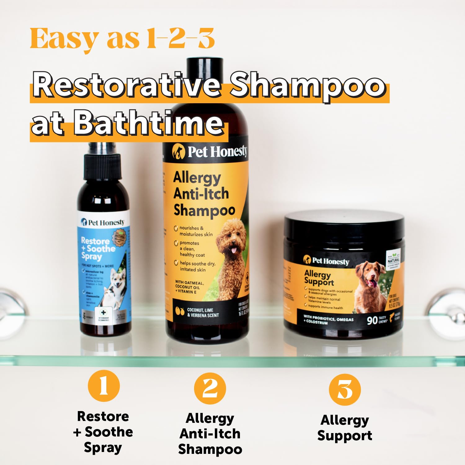 • Vet-Recommended for Itchy Skin and Allergy-Related Skin Issues: PetHonestys Allergy Shampoo has a pleasant coconut-lime verbena scent and is vet recommended to promote healthy skin, a shiny coat and help improve itchy, dry and irritated skin. The blend of natural ingredients in this shampoo will help any dog experiencing allergy related skin issues like rashes, itchiness, and dandruff, while leaving them with a soft, great smelling coat!