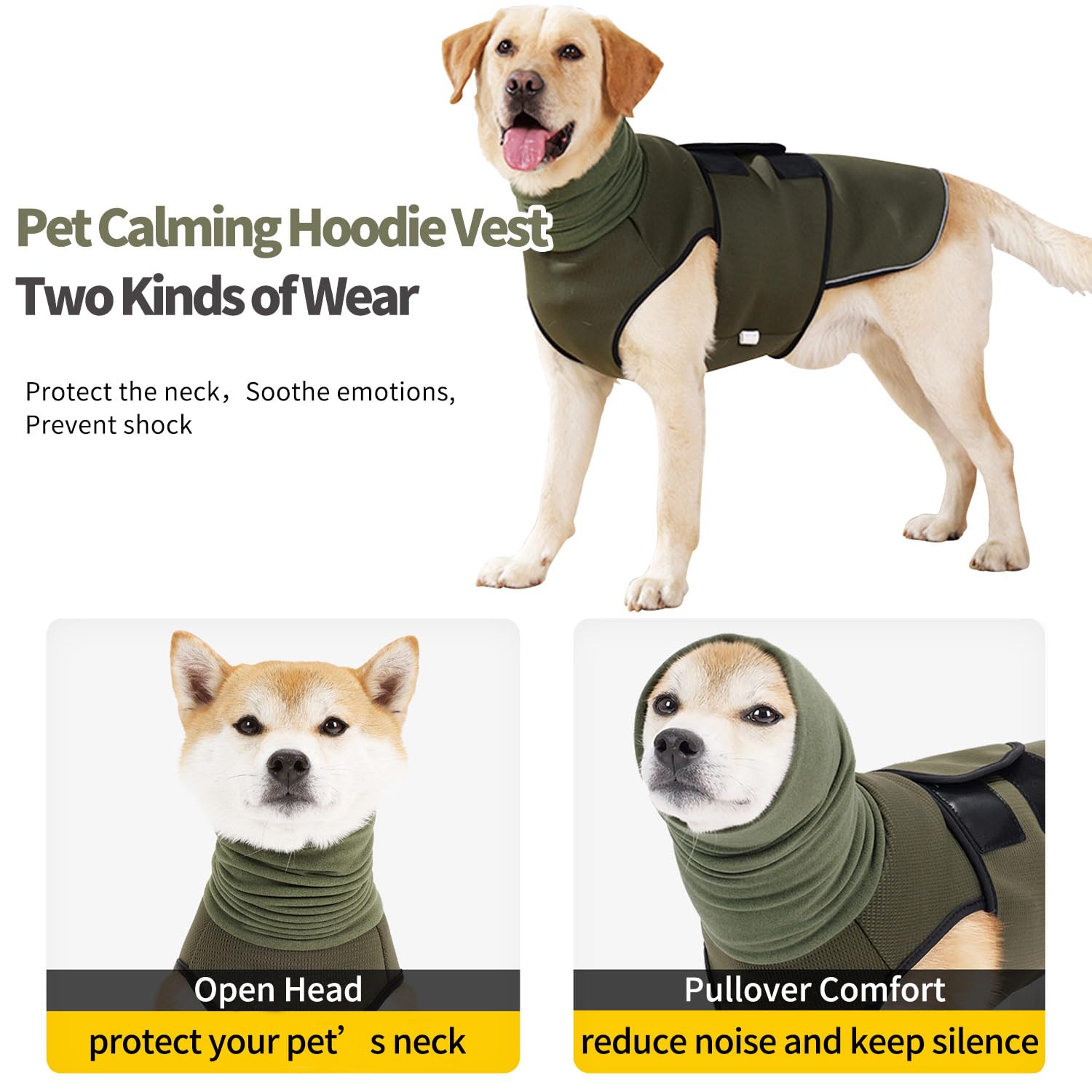 • Head Cover: The calming hoodie ncludes a soft head cover to minimize visual stimuli that may trigger anxiety or stress responses, help the dog to calm down quickly, relieve fear and anxiety, and achieve a calming effect.