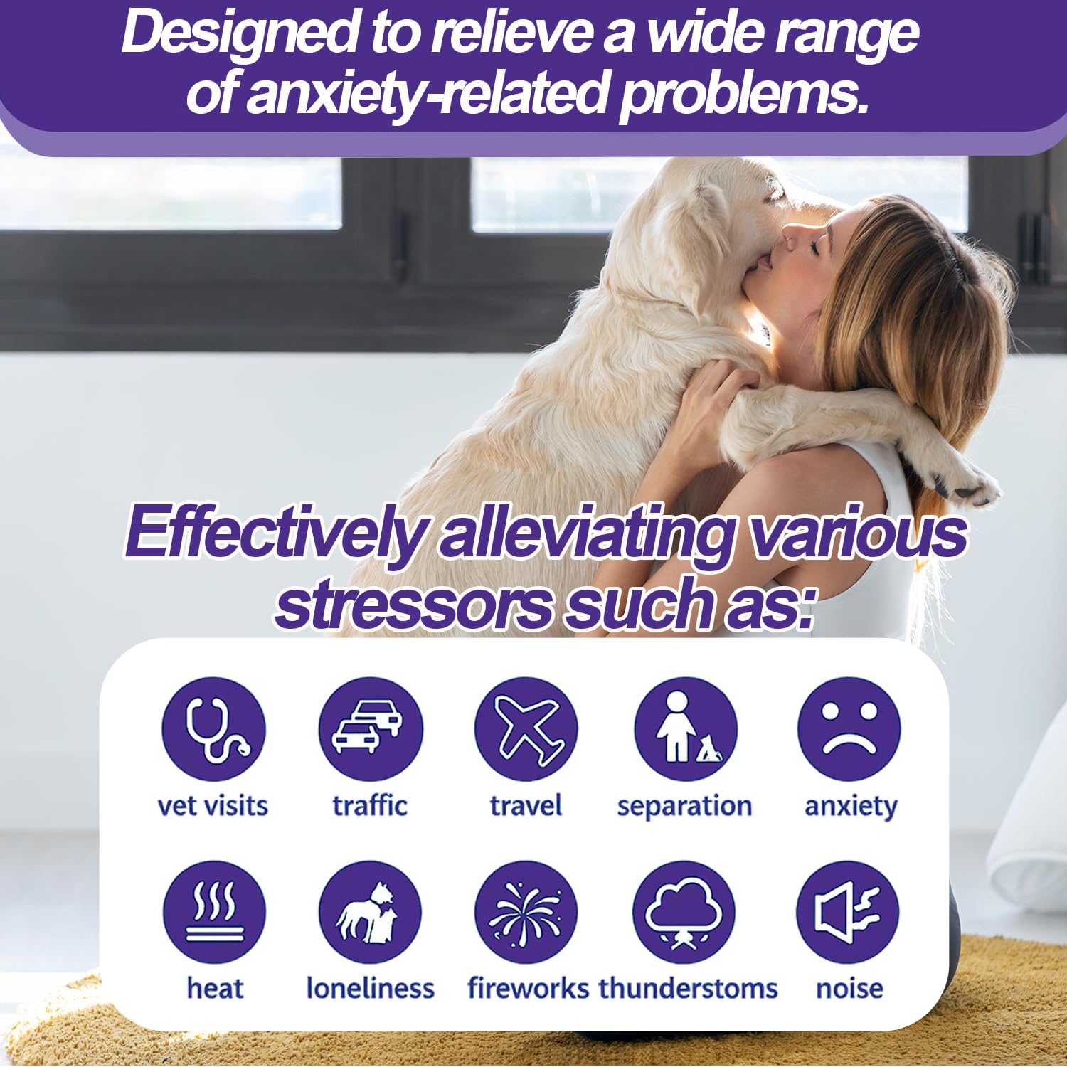 MULTIFUNCTIONAL ANXIETY RELIEF: Beyond being a sedative, the dog pheromones calming diffuser helps address various anxiety triggers, such as fear, noise, travel, visits to the vet, fireworks, and separation anxiety. By mimicking the calming pheromones of a mother dog, it sends signals of safety and comfort to help your dog gradually calm down and feel more secure