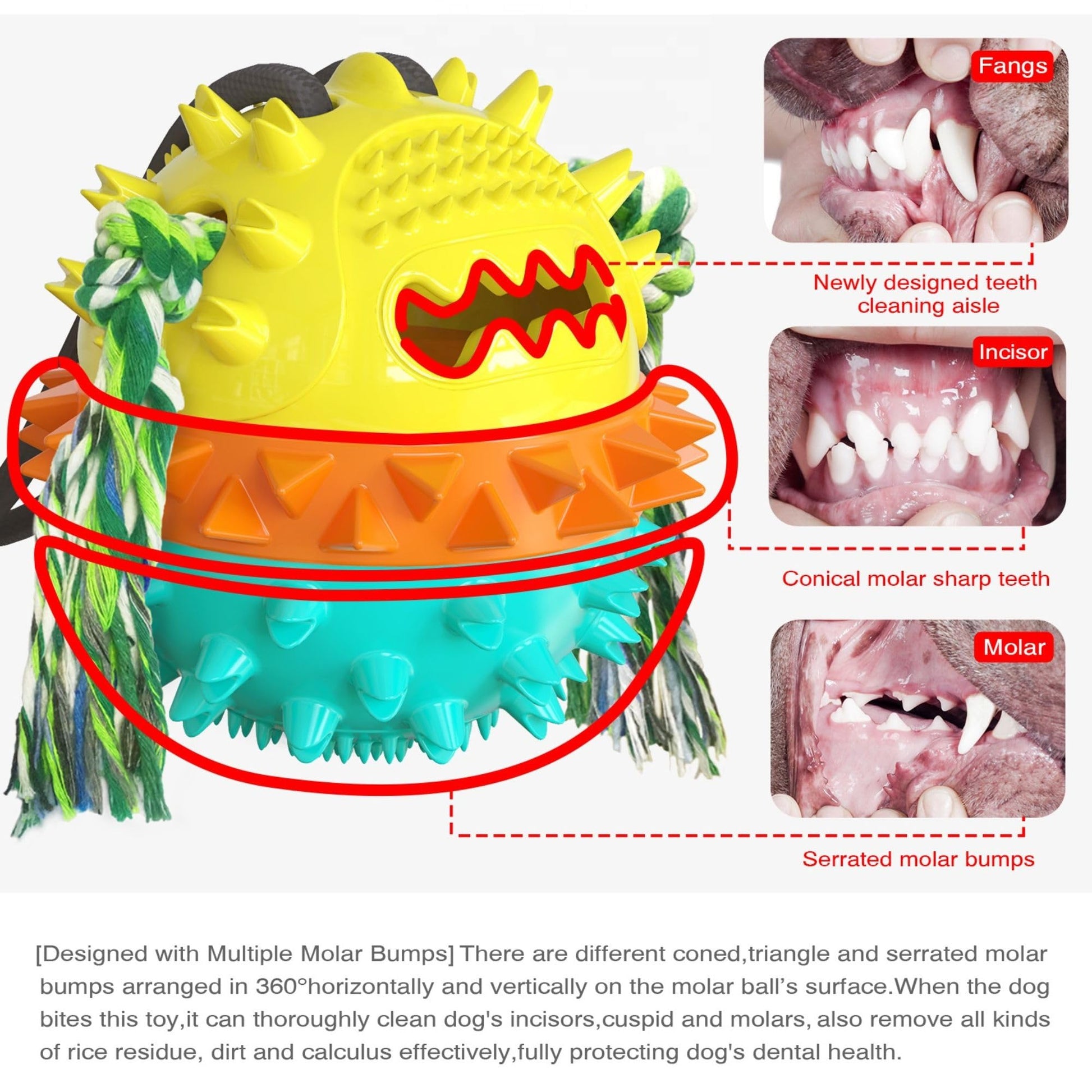 • Dual-Ball Design for Double Fun – Features both a large textured ball and a smaller spiky ball to keep dogs engaged longer. Encourages interactive play, fetch, and tug games while reducing boredom and anxiety.
