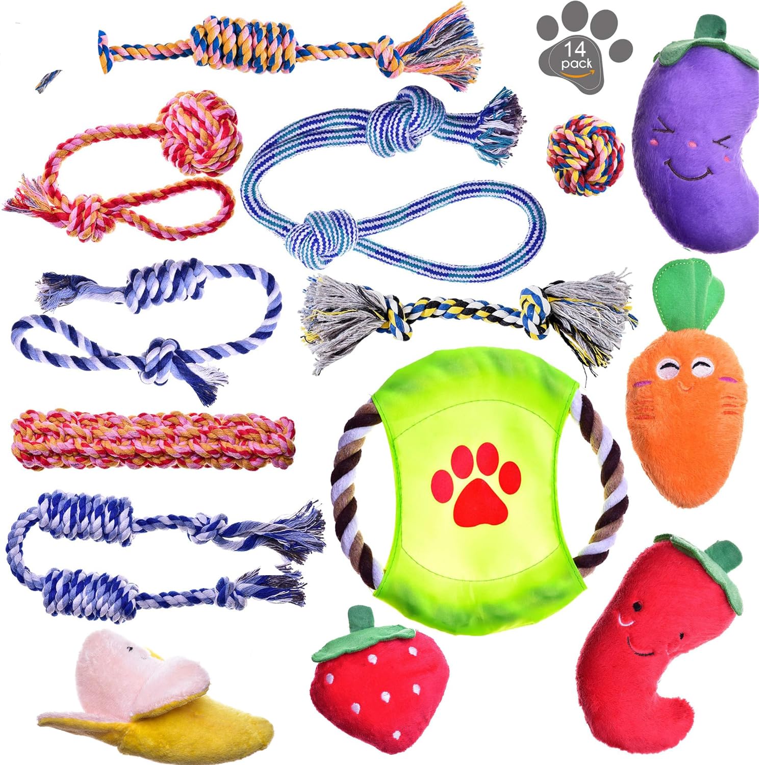 Dog Chew Toys - Puppy Teething Toys - Rope Toy Pack for Small Dogs - Tug Toy - Toy Set - Washable Cotton Rope for Dogs (Pack of 14)