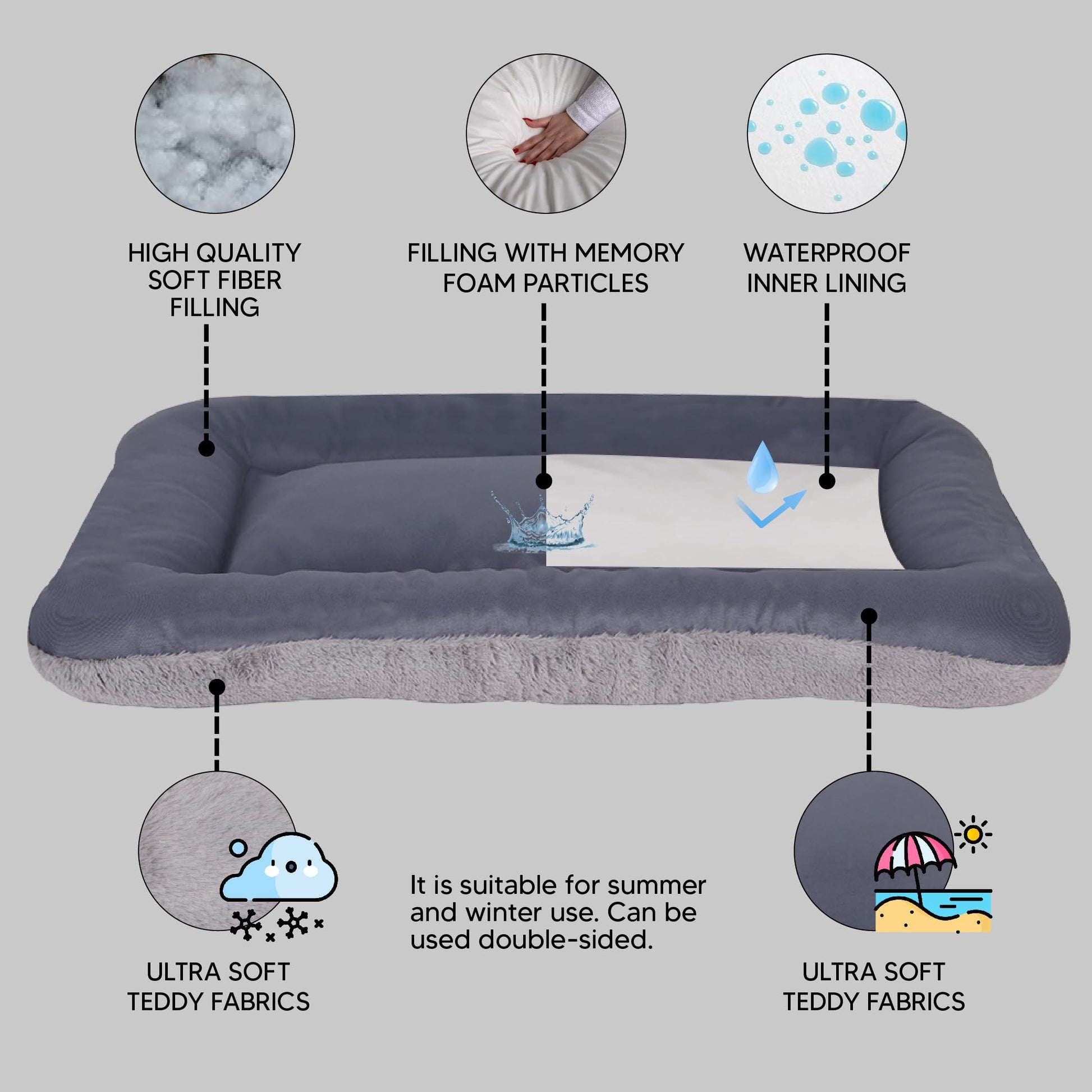 Dog Crate Bed for Medium Dogs,Memory Foam Dog Bed, Deluxe Thick Fluffy Comfy Kennel Pad, Durable Oxford Fabric on one Side, Washable Dog Bed with Waterproof Lining with Removable Cover. Gray