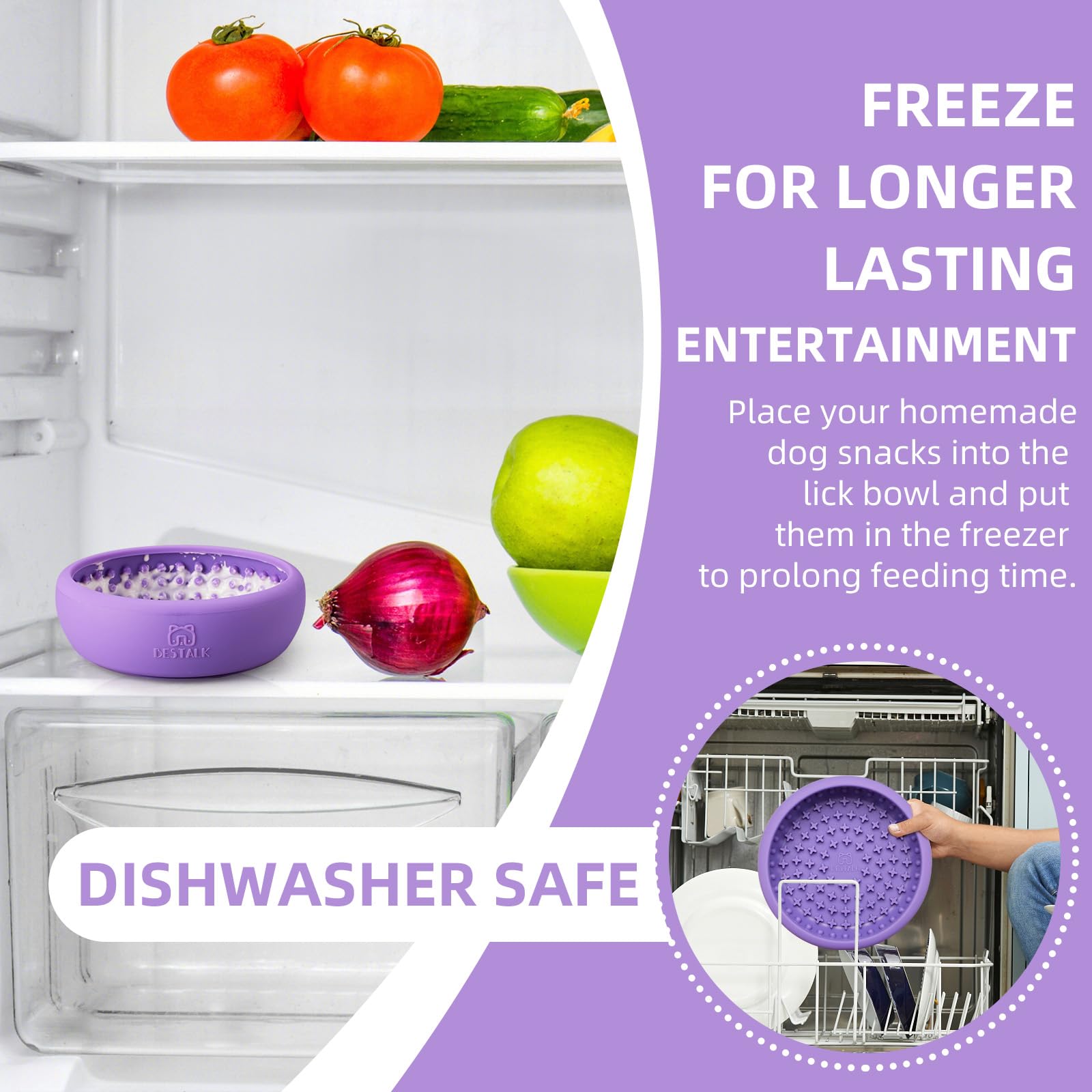 Dog Lick Bowl, Bestalk Anxiety Relief Lick Mat for Dogs, Non-Slip Freeze Licking Bowl Enrichment Puzzle Feeder for Distraction, BPA Free Silicone, Dishwasher Safe(Purple,S)