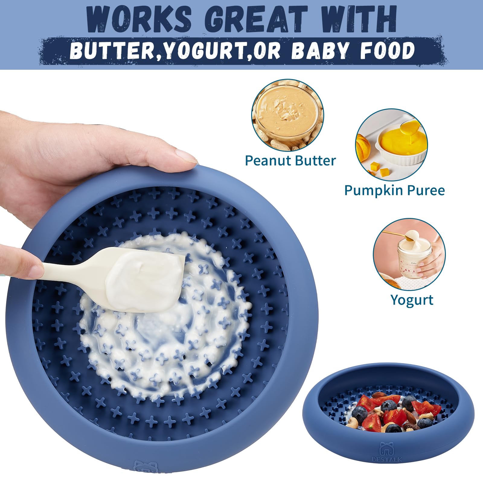 • SUPPORTS DENTAL HEALTH - The textured surface of lick bowl for dogs promotes licking, which stimulates saliva production, a key factor in maintaining dental health. This design efficiently removes food particles that contribute to bad breath, promotes overall oral health, healthier gums and teeth.