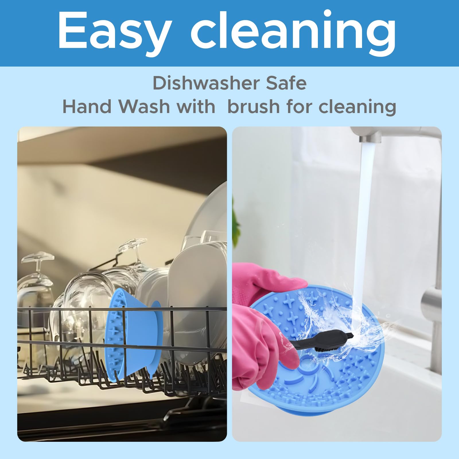 Dog Lick Bowl – Silicone Lick Mat for Dogs with Freeze Bone, Slow Feeder, Non-Slip Base, Includes Brush & Scraper, Large Opening for Anxiety Relief & Oral Health, Ideal for Frozen Treats (Blue)