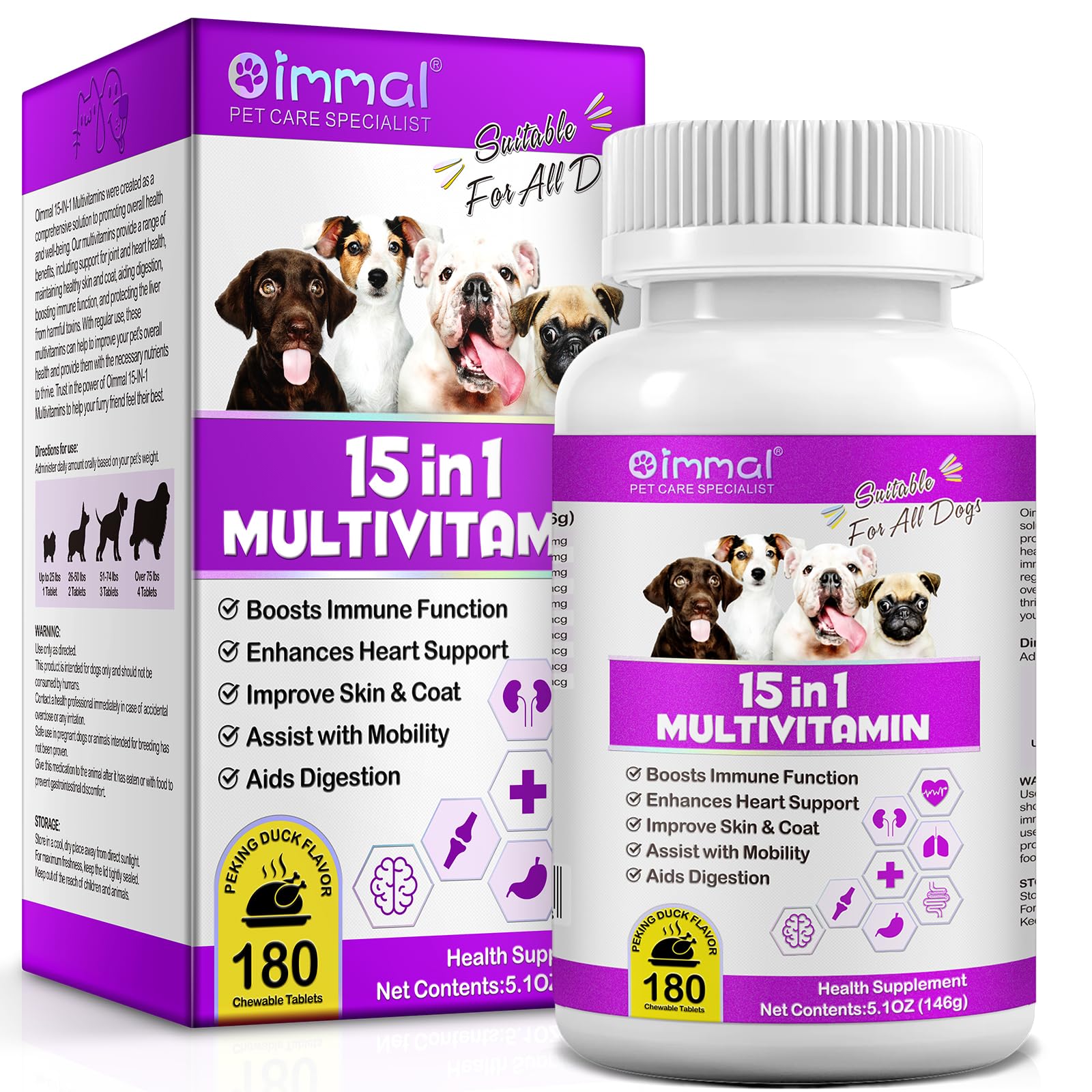 - 15 in 1 Dog Multivitamin -Our dog multivitamin supplement provide your pets with added antioxidants to their normal daily diet to promote healthy immune system, aid digestion, boost vitality, maintain overall health and increase their general well-being.
