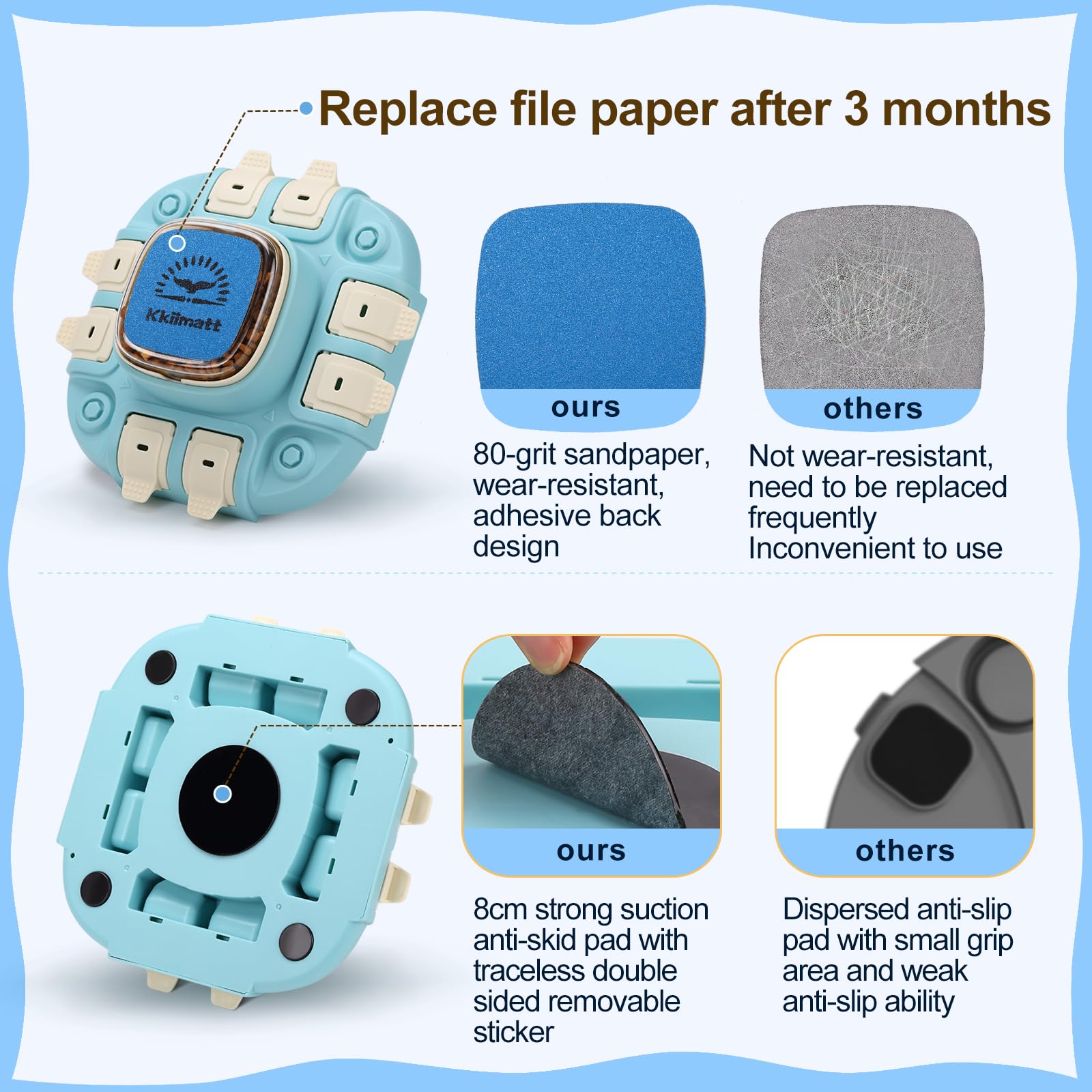 Enhanced anti-slip design ensures stability and safety. The base of this dog puzzle nail grinding treat dispenser is equipped with 4 distributed pads and a thickened central anti-slip pad for extra stability. The central pad, featuring an 8cm large diameter double-sided traceless adhesive, keeps the nail file claw care toy securely in place,Prevents toys from falling over.The non-slip pads and nail file toys are washable for easy maintenance.