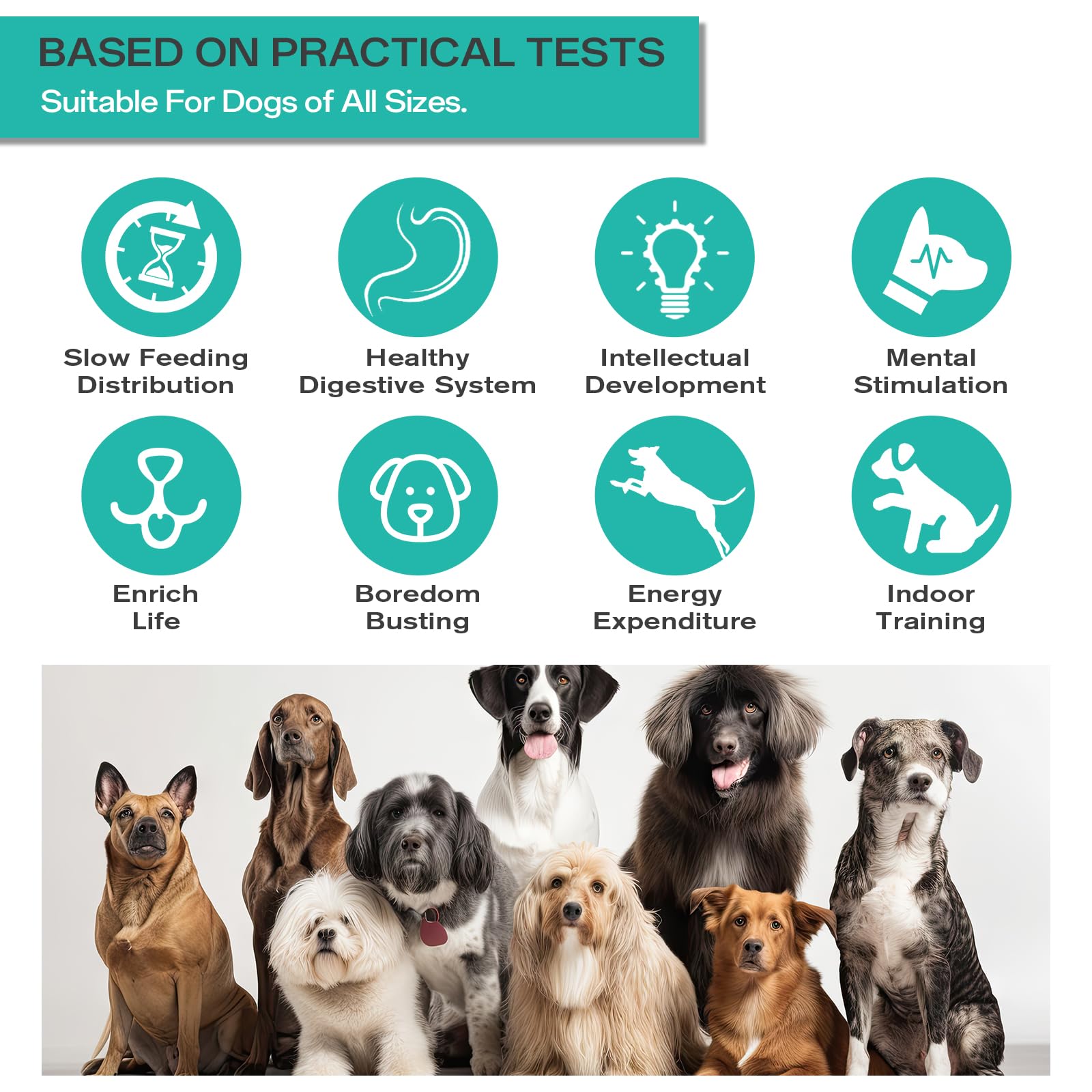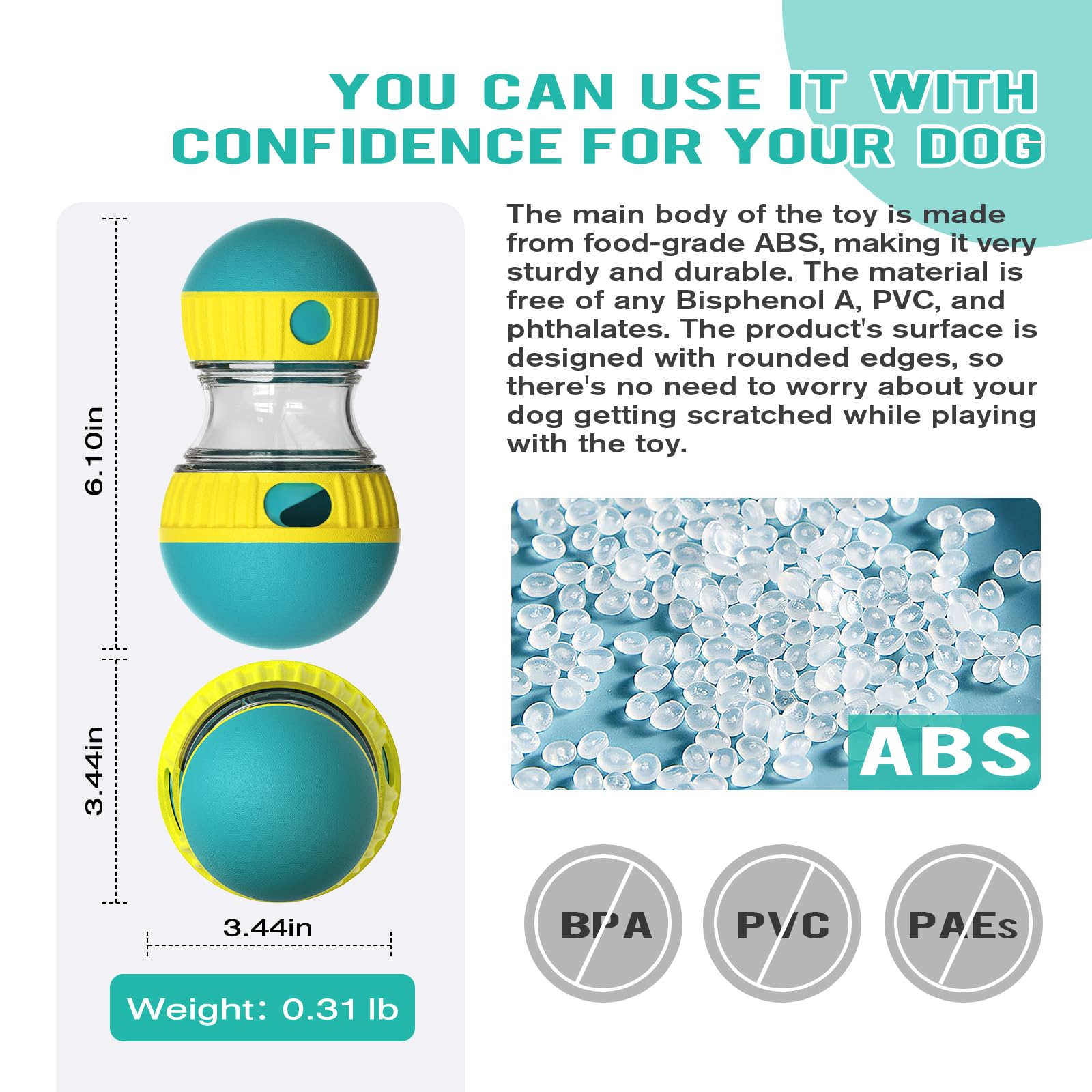 • EALTHY SAFETY MATERIAL - This dog puzzle toy, pet slow feeder treat ball, is made of high-quality food-grade ABS material and does not contain any bisphenol A, PVC, or phthalates, ensuring full protection of your dog's health. It is a tough, durable, non-toxic, and safe dog treat dispenser toy. You can confidently let your dog use it. It's also an ideal choice for puzzle toys for dogs.