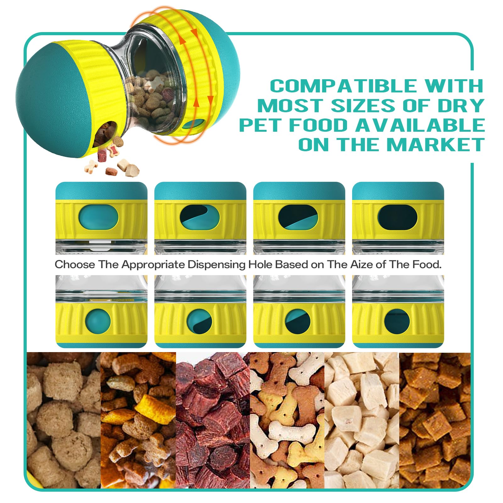 • FOOD DISPENSER - The toy, an interactive dog toy for boredom and puppy puzzle, has differently sized spheres at both ends. As dogs push the toy, it moves within a fixed area, allowing dogs to continuously chase and play with it. During movement, food is dispensed from the food holes on both sides of the toy. Your furry friend gets smarter as they play with this dog treat puzzle, learning how to roll the ball to get dog treats to fall out. It's one of the best dog toys to keep them busy.
