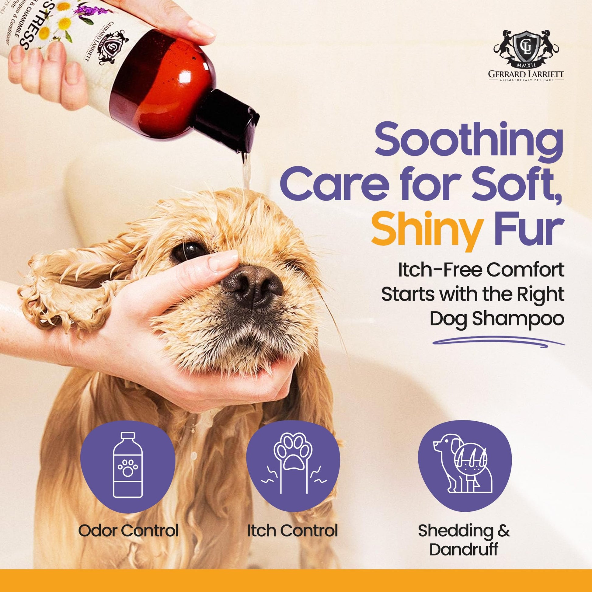 ANTI ITCH DOG SHAMPOO FOR ITCHY, SENSITIVE SKIN - Provide relief to your furry friend with this natural shampoo for dogs with itchy skin. Designed with oatmeal and chamomile, it calms irritation and redness while leaving a fresh lavender scent. Perfect for pets with allergies, this gentle shampoo makes bath time enjoyable and is safe for regular use.
