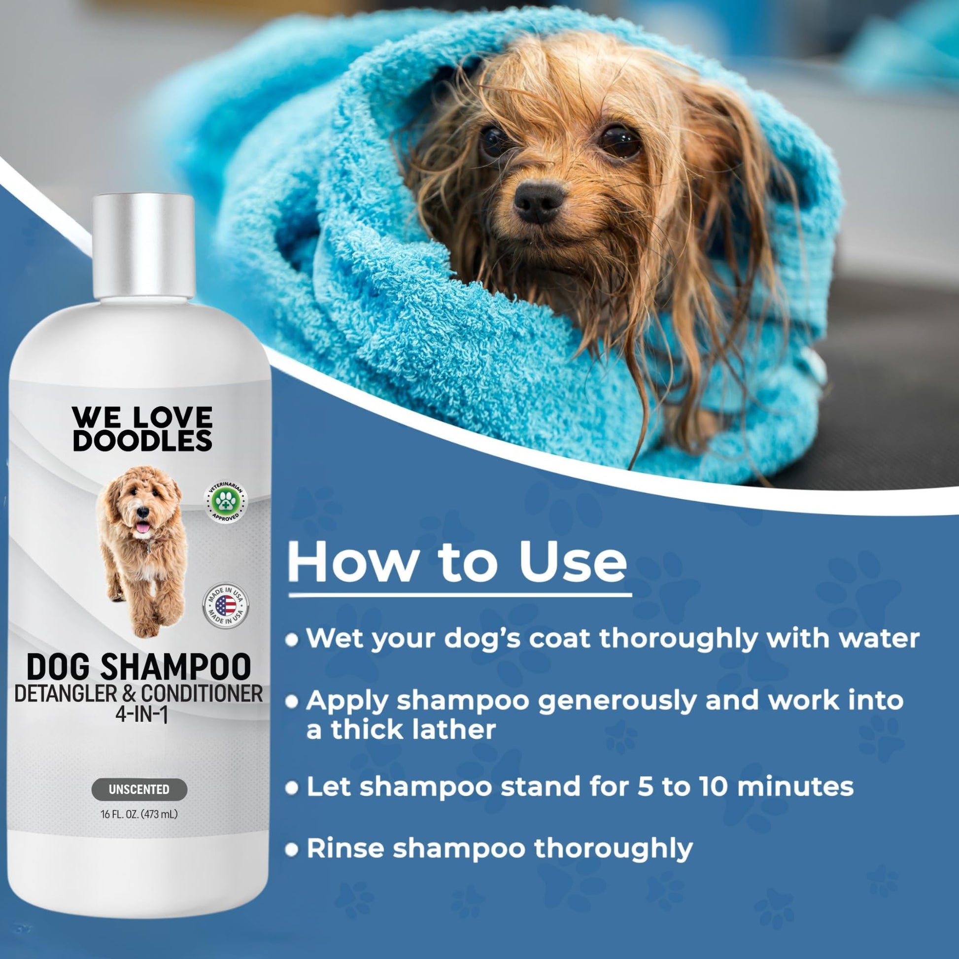 Dog Shampoo, Conditioner & Detangler - Best Shampoo for Goldendoodles, Poodles & Doodles - for Matted Pet Hair - Sensitive Skin Shampoo for Puppies - Made in The USA, 16OZ (Unscented)