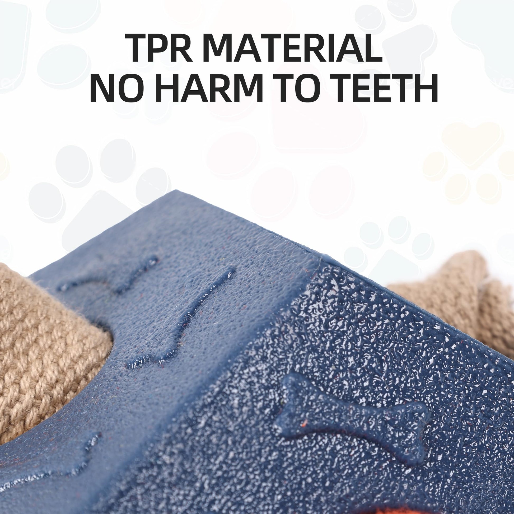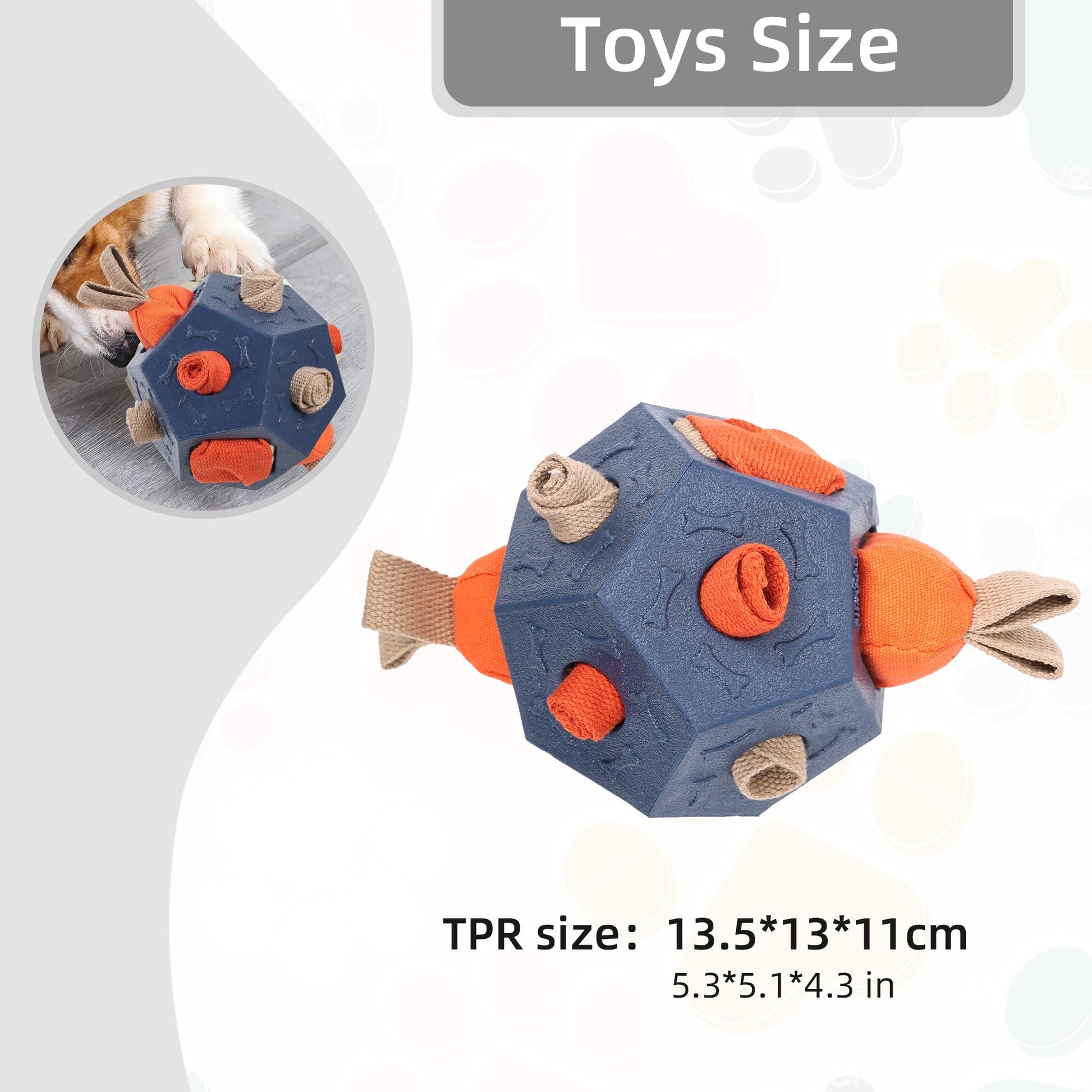 • UPGRADED UNBREAKABLE BALL: This pet toy is made of TPR material with a soft and tough outer layer and tightly woven cotton strips on the inside to make it more durable, allowing dogs to chew freely, interactive puzzle feeder toys to enrich your dog's life