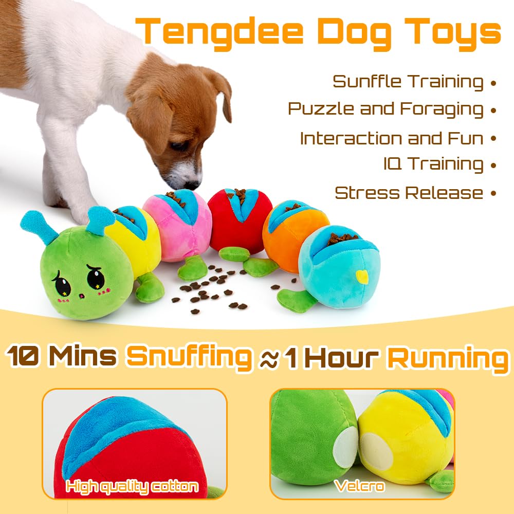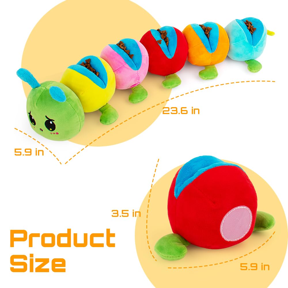 • INNOVATIVE DOG TOYS - The new caterpillar dog enrichment toys of plush dog toy is suitable for puppies, a unique product that combines play, bite, smell and eat, which is rare in the market. The body of the caterpillar can be split into six dog interactive ball toys. Each ball has a Velcro that can be stuck together. Therefore, this is both a caterpillar snuffle toy and a dog ball interactive toy.