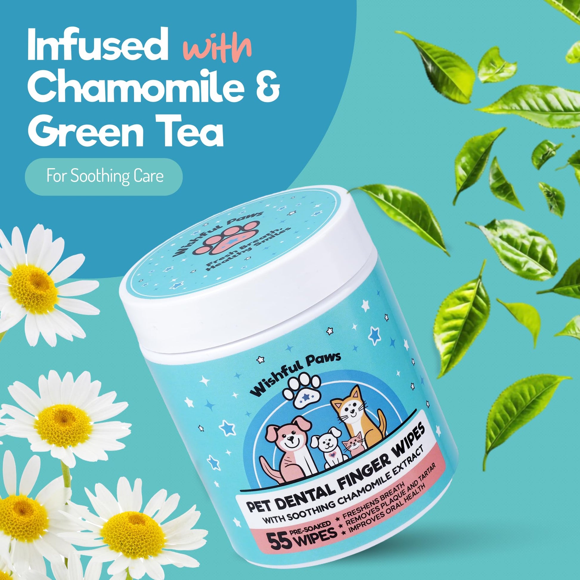 • ๐ƒ๐จ๐  ๐๐ซ๐ž๐š๐ญ๐ก ๐…๐ซ๐ž๐ฌ๐ก๐ž๐ง๐ž๐ซ - Eliminate bad pet breath effortlessly. Infused with soothing chamomile and natural green tea extracts, these wipes target odor-causing bacteria at the source, leaving your petโ€™s breath fresh without the hassle of brushing or rinsing. Also ideal for quick clean-ups with dog wipes.