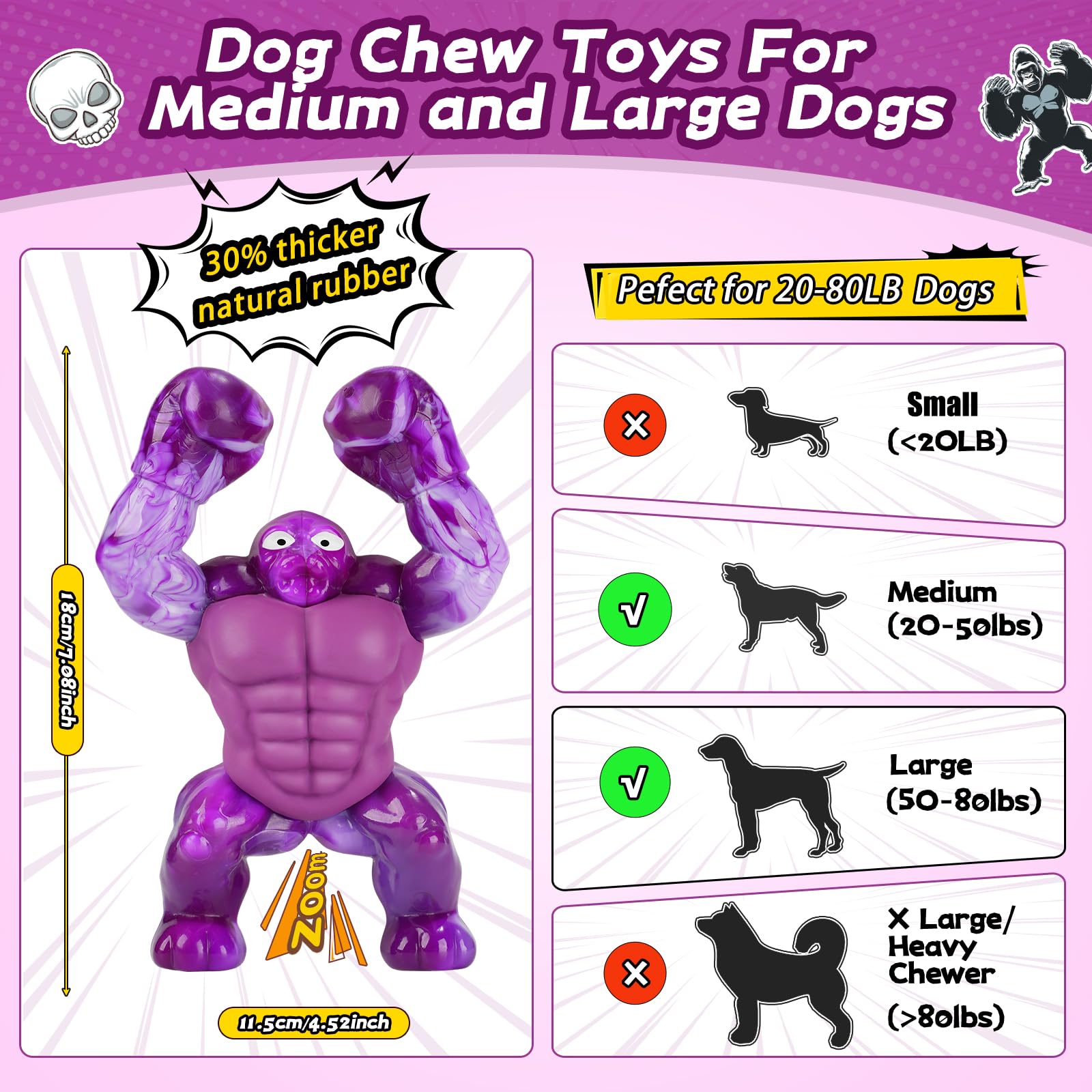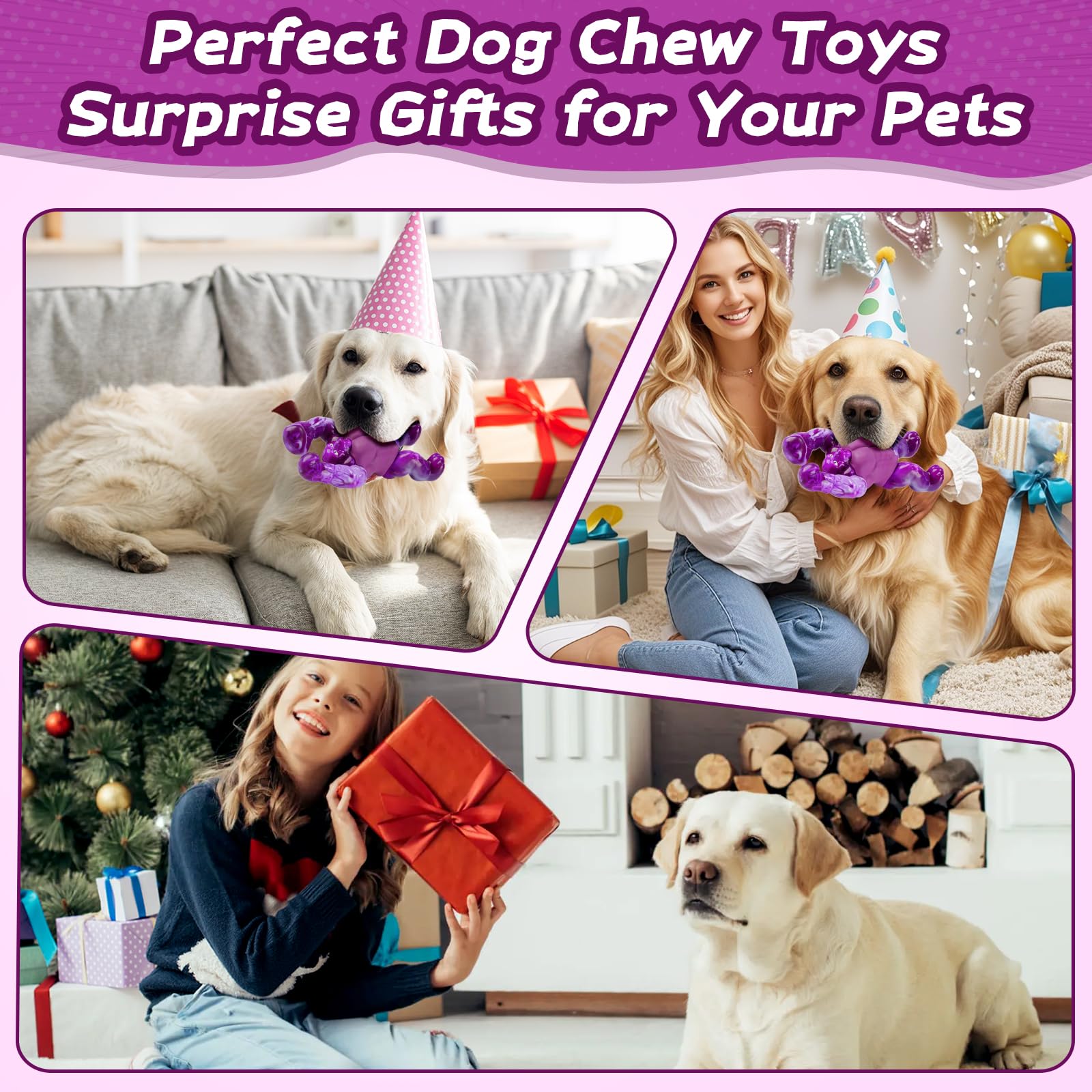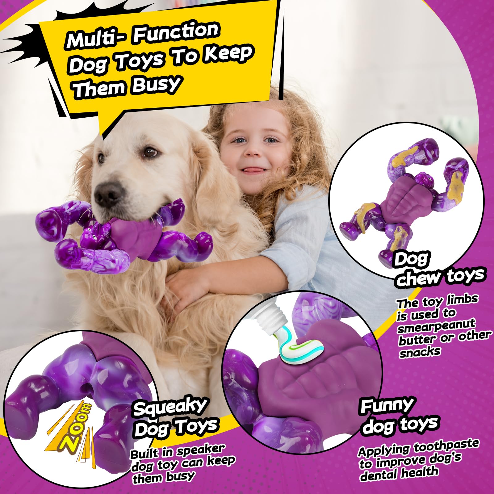 Dog Toys for Aggressive Chewers, Indestructible Chew Toys for Medium Large Breeds(20-80lb), Durable Squeaky Tough Dog Toy to Keep Them Busy (Purple)