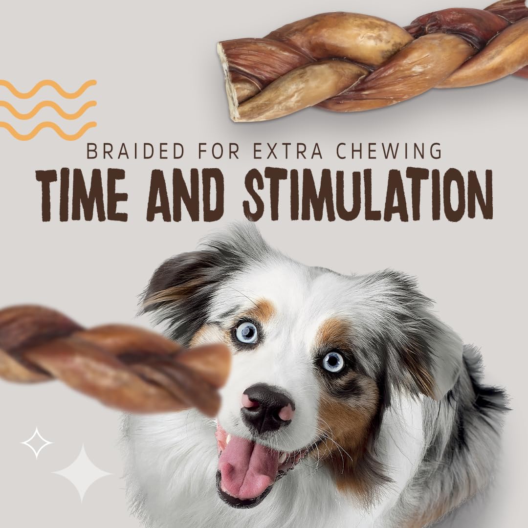 Exceptional in quality and longevity, our Power Sticks last longer than standard bully sticks, providing extended chewing satisfaction. They are ideal for training, rewards, and calming stress relief. They also promote dental health by reducing tartar and plaque buildup, bestowing your canine companion with cleaner teeth and fresher breath. Supports Puppies, Adults, and Seniors - Satisfaction Guaranteed.