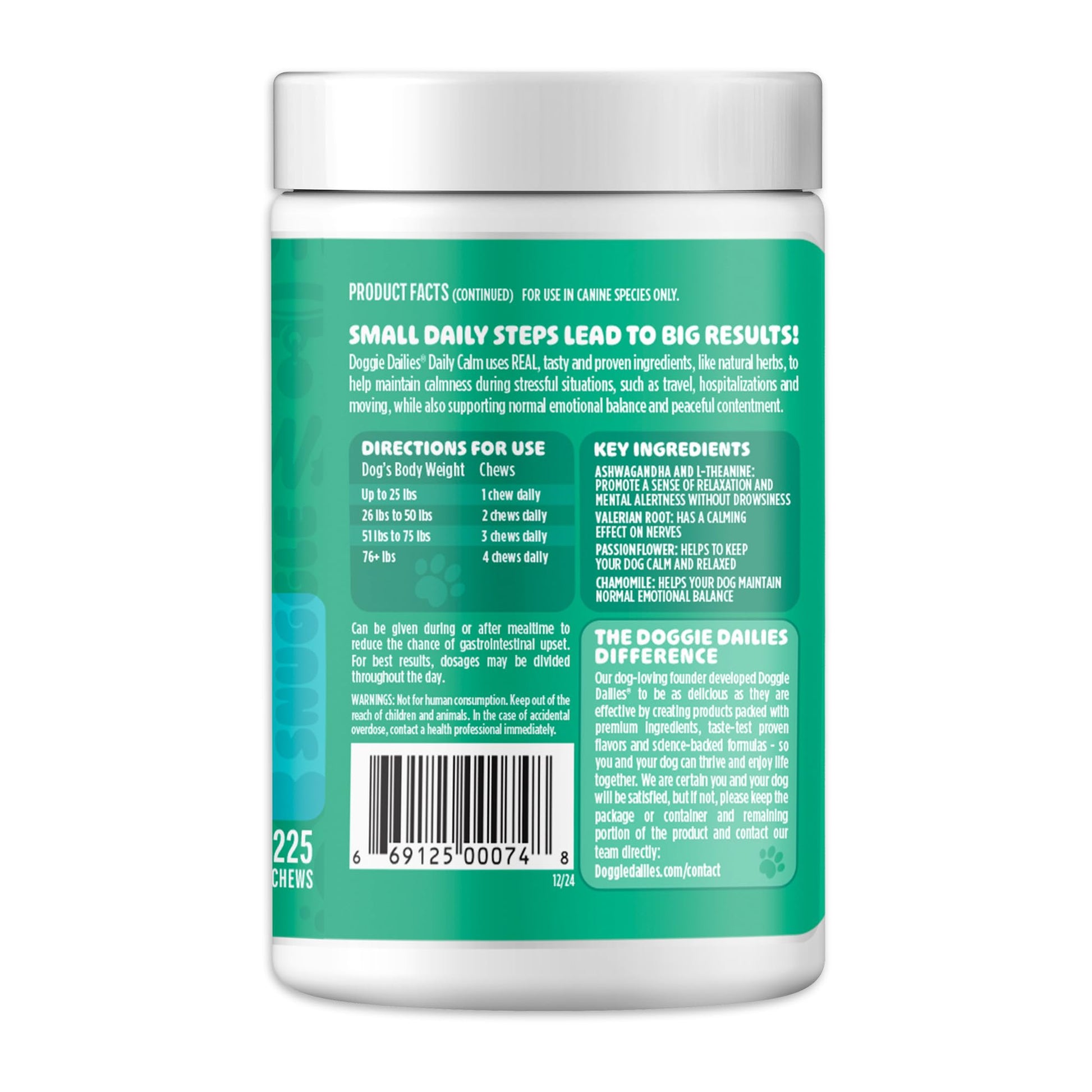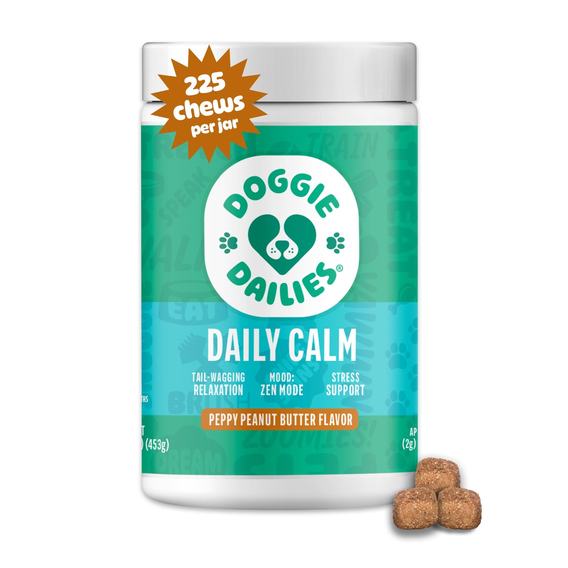 Doggie Dailies Calming Chews, Melatonin & Chamomile for Stress Relief, Relaxation & Anxiety (Peanut Butter, 225 Soft Chews)