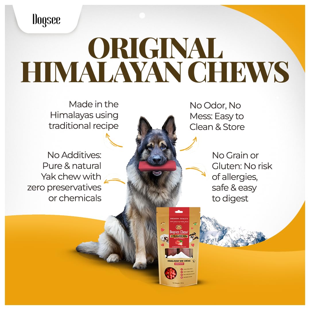 - NATURAL INGREDIENTS: These Strawberry Yak cheese Himalayan dog chews are hand-crafted in the Himalayas using only natural ingredients - yak and cow milk, real strawberries, lime juice, and loads of love.