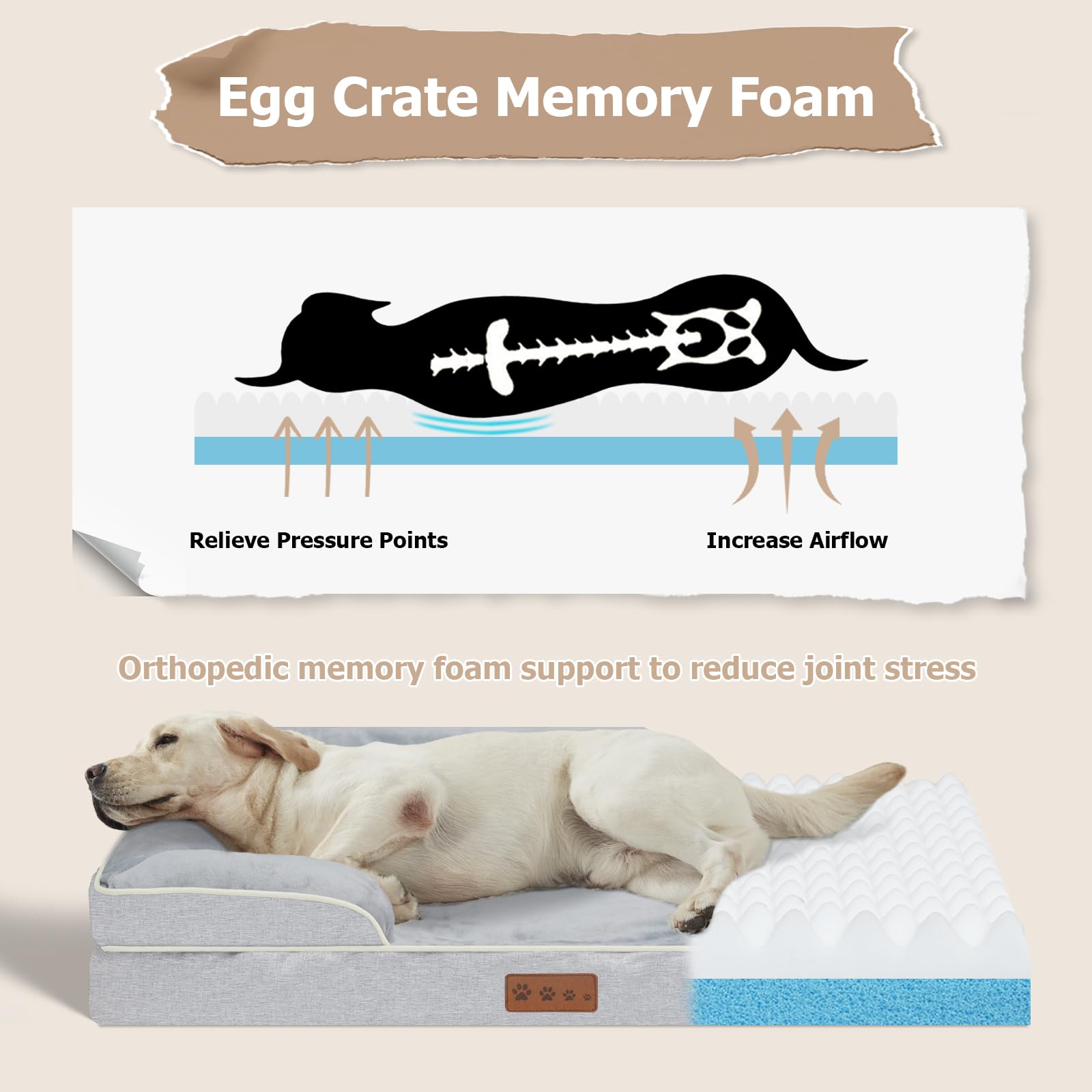 - MEMORY FOAM DOG BED: The Dokdogs dog bed for couch features memory foam and egg crate foam for comfort, breathability, and support. Relieving pressure and providing comfort. Our dog bed orthopedic is suitable for senior dogs who need extra care
