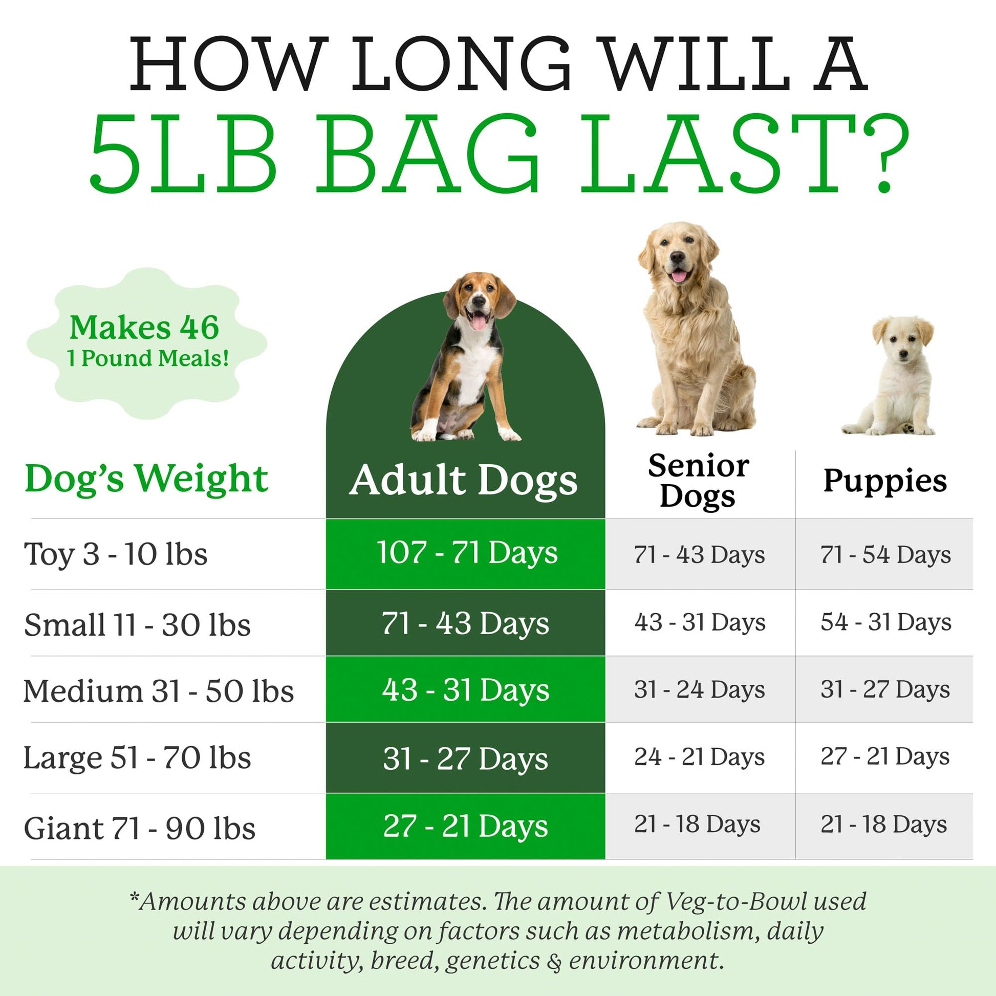 - Freshness You Can See and Smell! Veg-to-Bowl is a grain-free base mix used to effortlessly create balanced, homemade meals for your dog as an alternative to kibble and other highly processed commercial dog foods. Feeding your dog a whole food, nutrient dense diet has been shown to improve digestion, increase energy, help improve itchy skin, and produce firmer, less smelly stools. (You'll thank us later!)