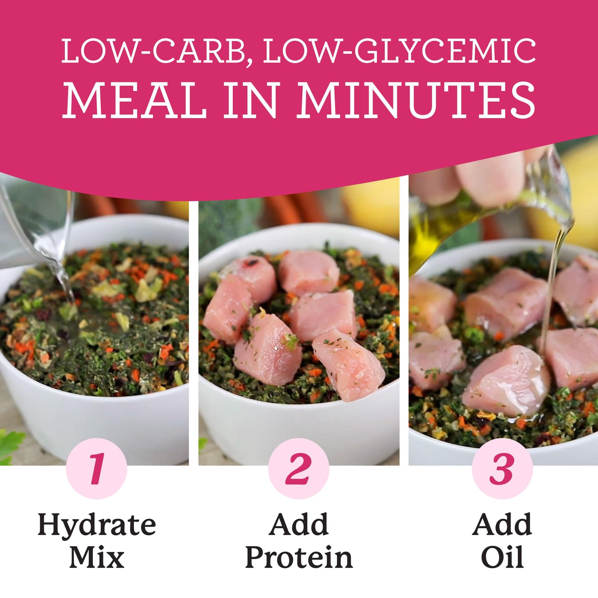 - Ready in minutes. Simply rehydrate the base mix with hot water, let sit for 8 minutes, and add the protein of your choice and a healthy oil of your choice for healthy fats. (Try our fish oil!)