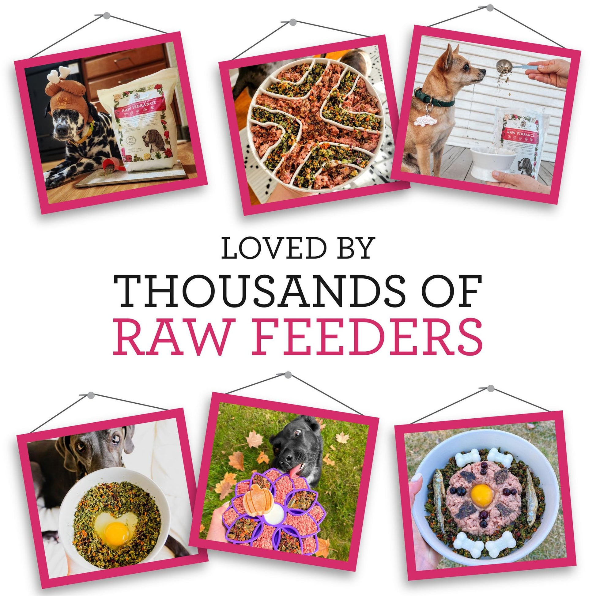 - Feed your dog the way nature intended. Raw Vibrance is a base mix that takes the guesswork out of creating a balanced Raw & Homemade Diet. This base mix was designed specifically to support raw feeders but is perfect for any dog's diet. Feeding your dog a whole food, nutrient-dense diet has been shown to help improve digestion, help increase energy, help improve longevity, help improve itchy skin, and produce firmer, less smelly stools. (You'll thank us later!)