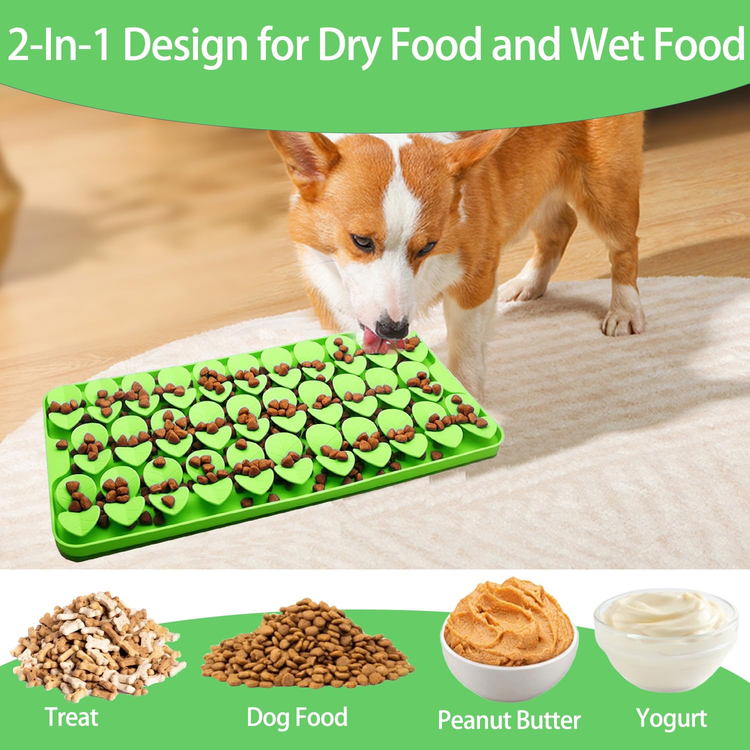 • What’s the Benefit will the Snuffle Mat Bring to Your Dog: The durable snuffle mat for large dogs can slow down the speed of eating time.Increasing your dog's eating time can allow your dog to consume energy, reduce anxiety.The leaf design of the silicone snuffle mat,simulating the grass environment, can exercise your pet's smell training and foraging ability. Make your pet more health and happy.