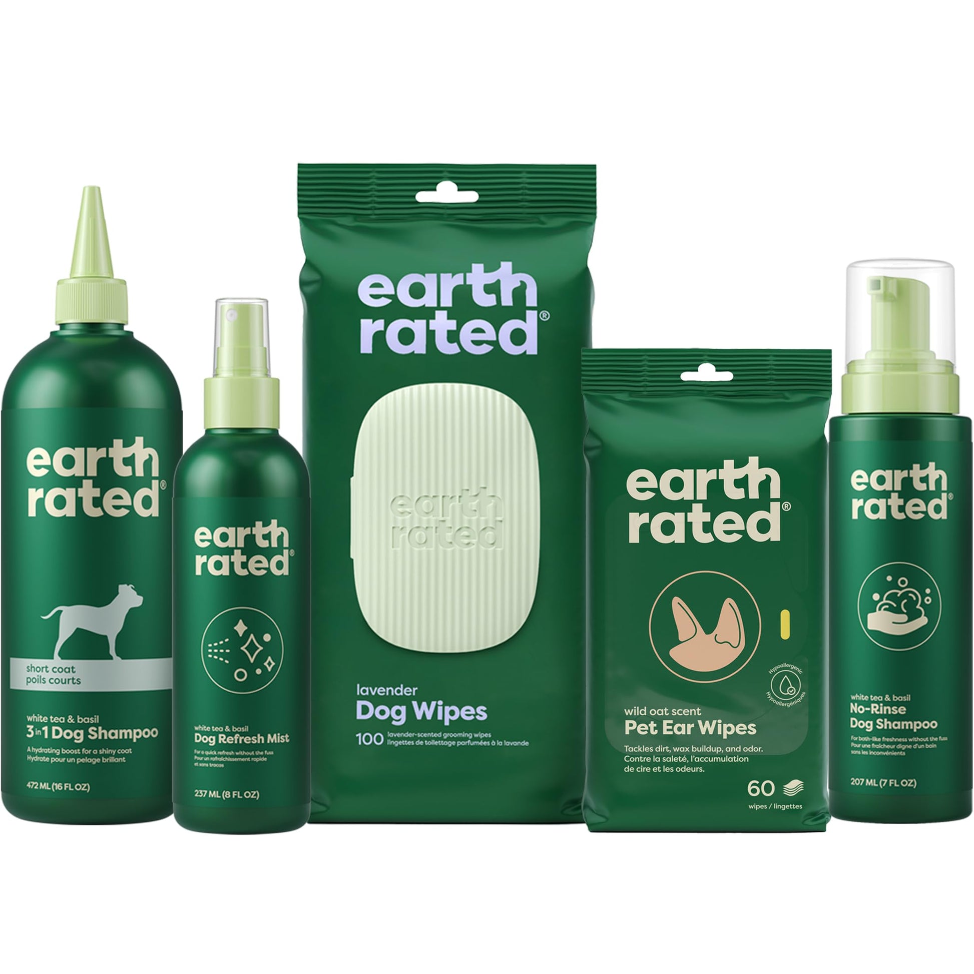 Earth Rated Short Coat Essentials - Dog Shampoo, Grooming Wipes, Refresh Mist, Ear Wipes & No-Rinse Shampoo