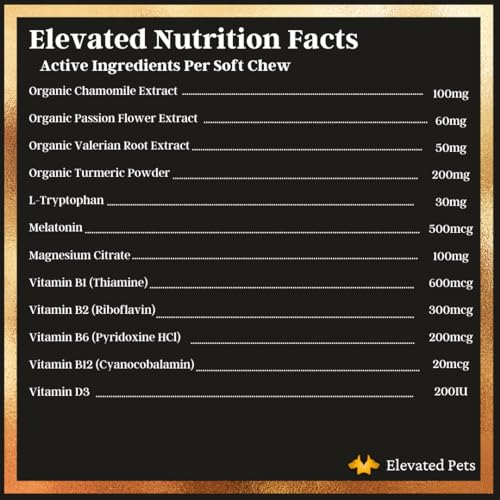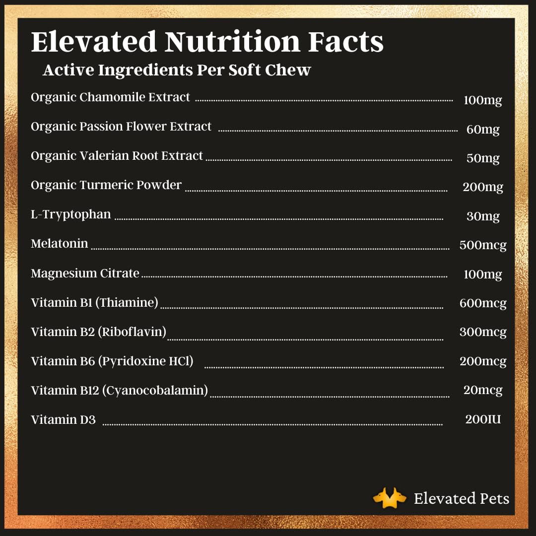 Elevated Pets Calming Dog Treats for Anxiety Relief – Melatonin, Chamomile & L-Theanine | Sleep & Stress Support for Travel, Thunder, Barking