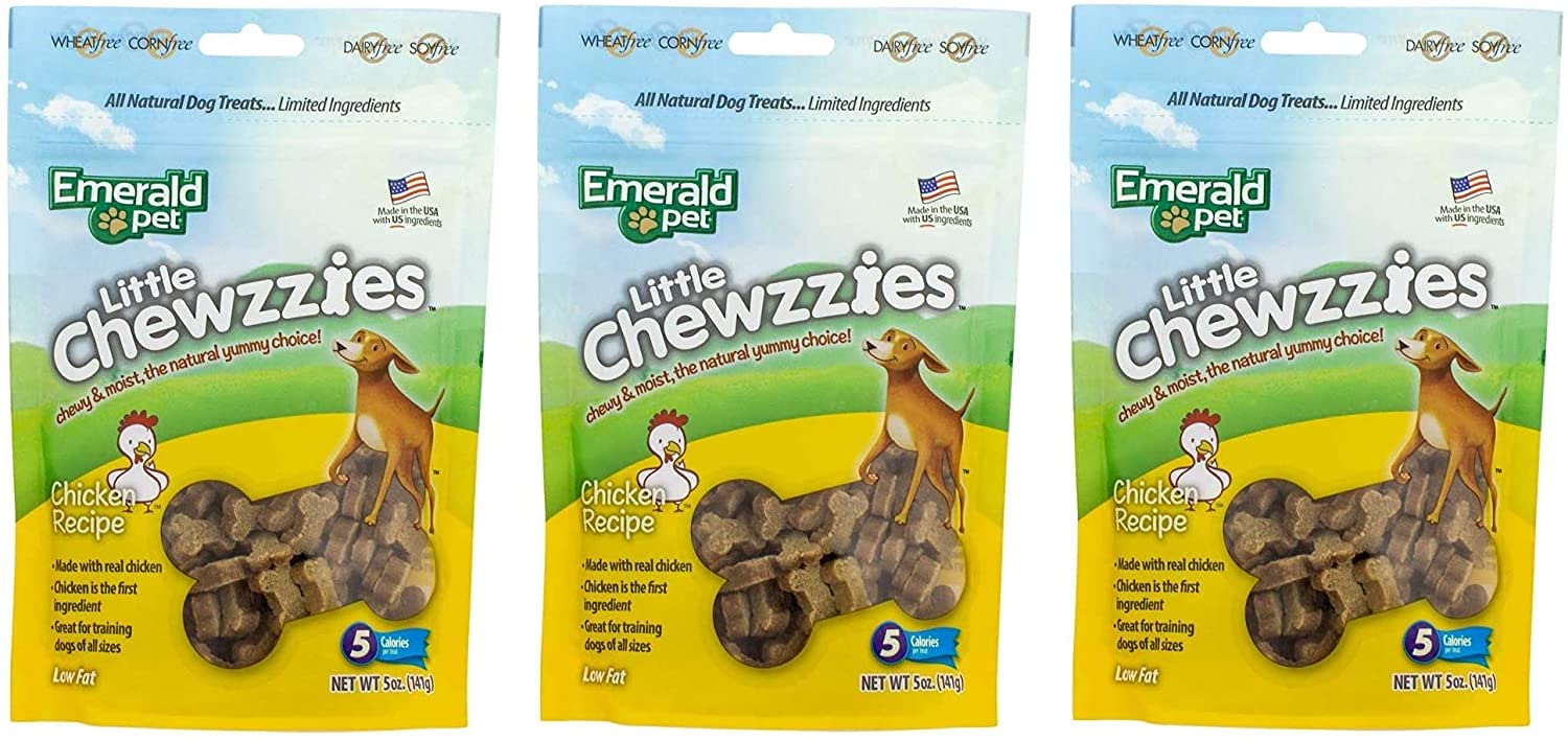 Emerald Pet 3 Pack of Little Chewzzies, 5 Ounces Each, Chicken Flavor Low Calorie Wheat-Free Dog Treats Made in The USA