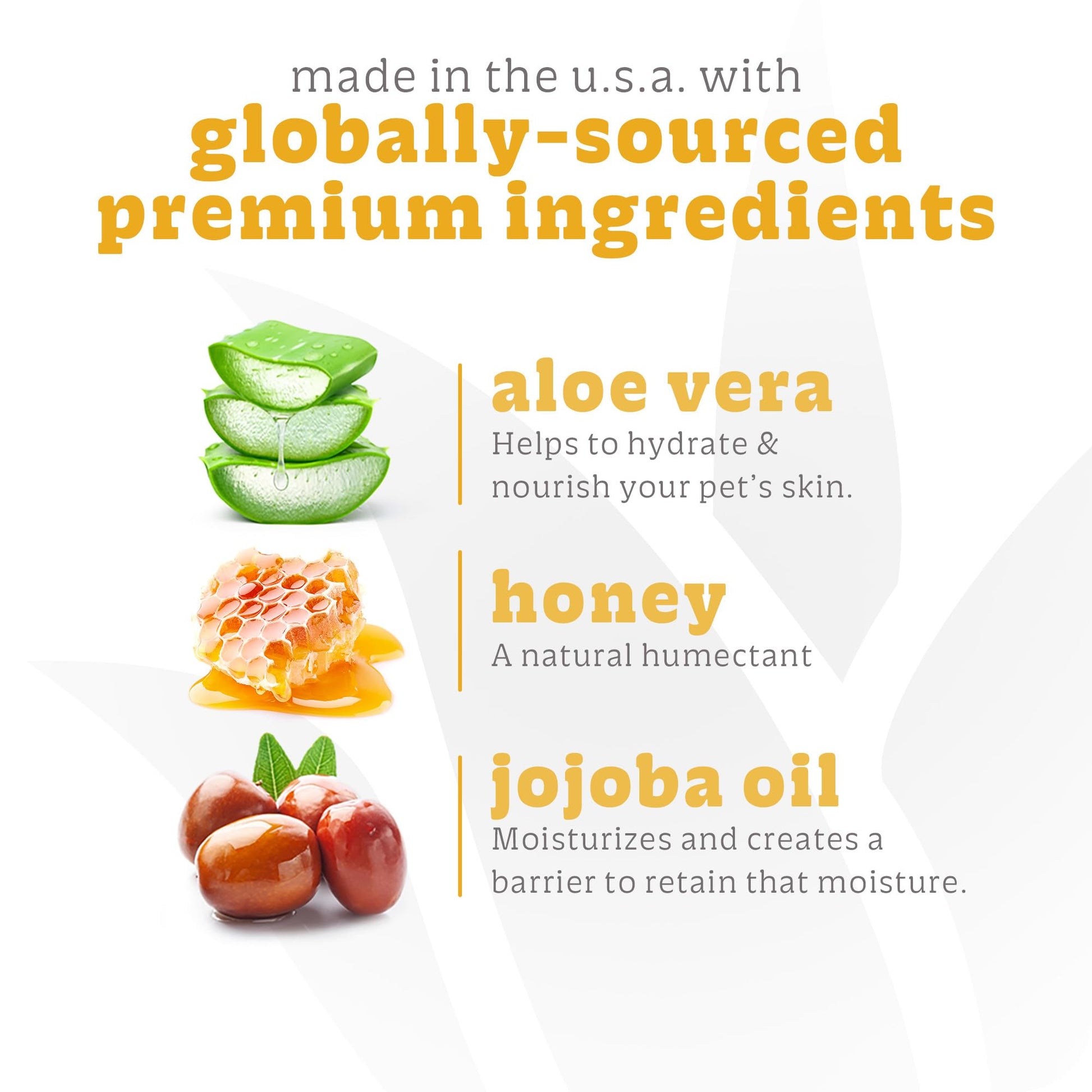FORMULATED WITH ALOE: Infused with the soothing and moisturizing properties of Aloe Vera, ensuring a soft, healthy, and shiny coat while promoting skin hydration.