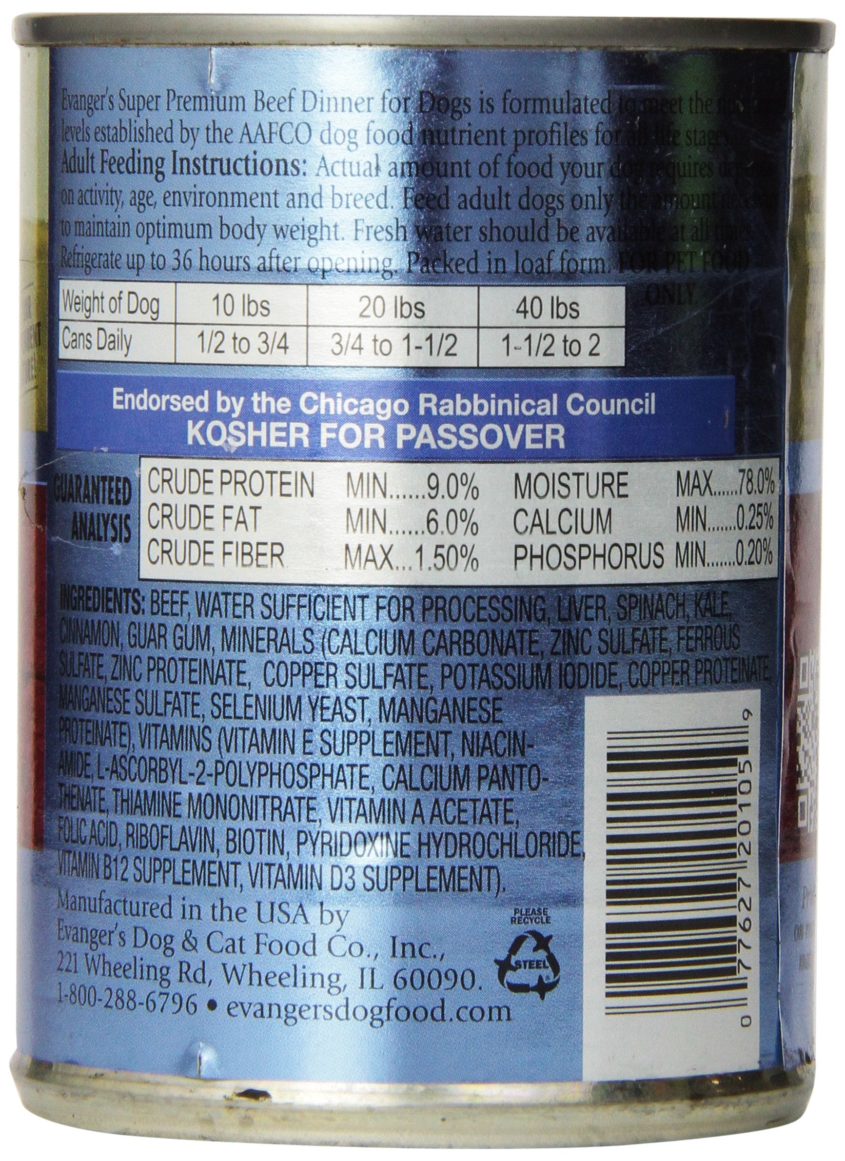 Evanger's Super Beef Dinner for Dogs – 12 Count, 13 oz Each – Grain Free Wet Dog Food with Spinach & Kale – All Life Stages – Limited Ingredient Diet