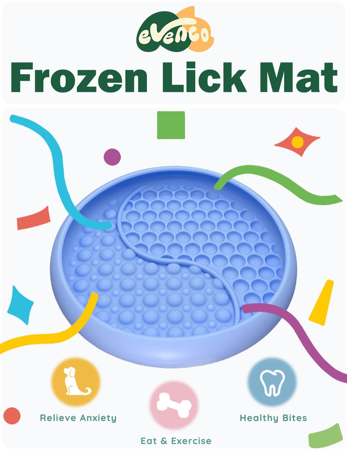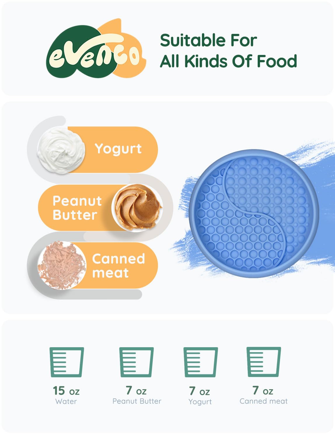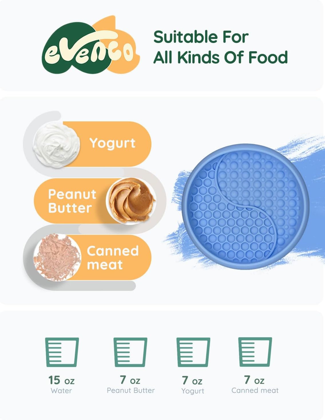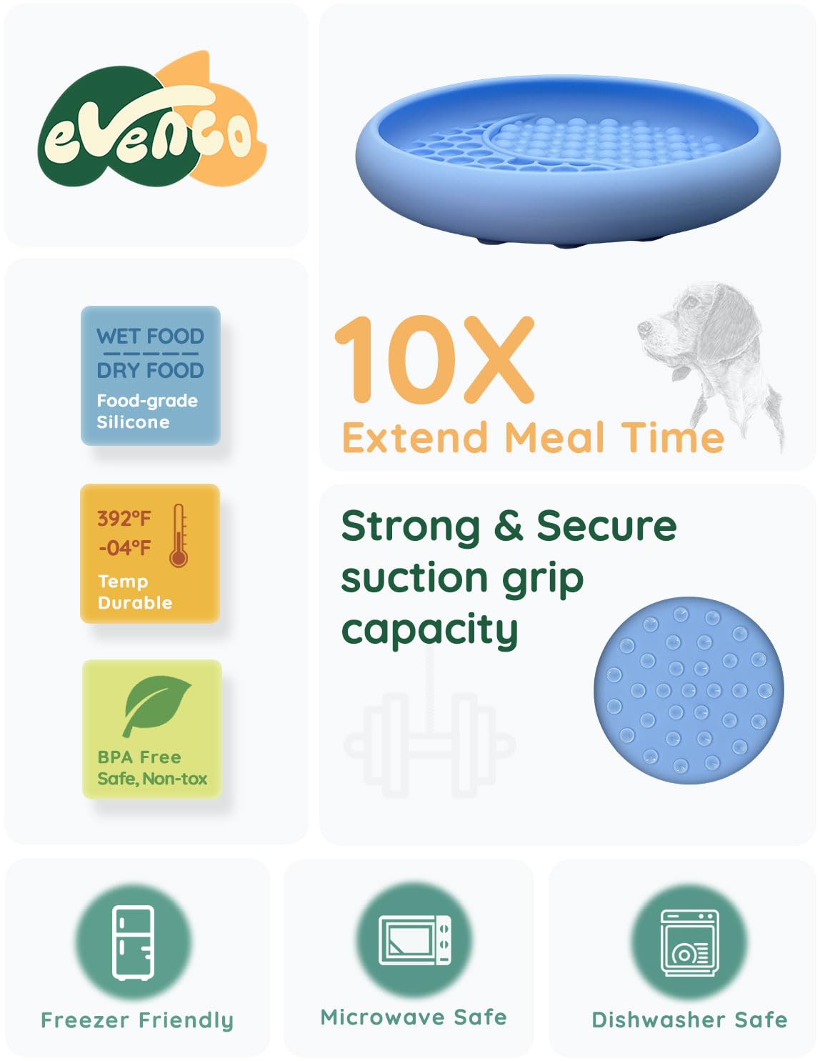 Evenco Lick Mat for Dogs, Silicone Slow Feeder Licking Mat with Non-Slip Suction Cups, Freeze-Friendly Lick Bowl for Enrichment Play, Anxiety Relief & Keeps Busy (8.0" x 1.4" Light Blue)