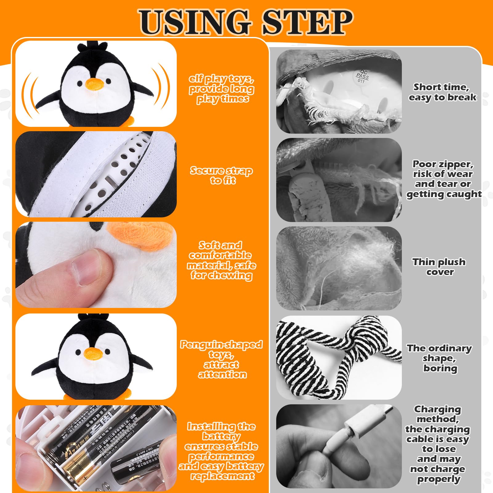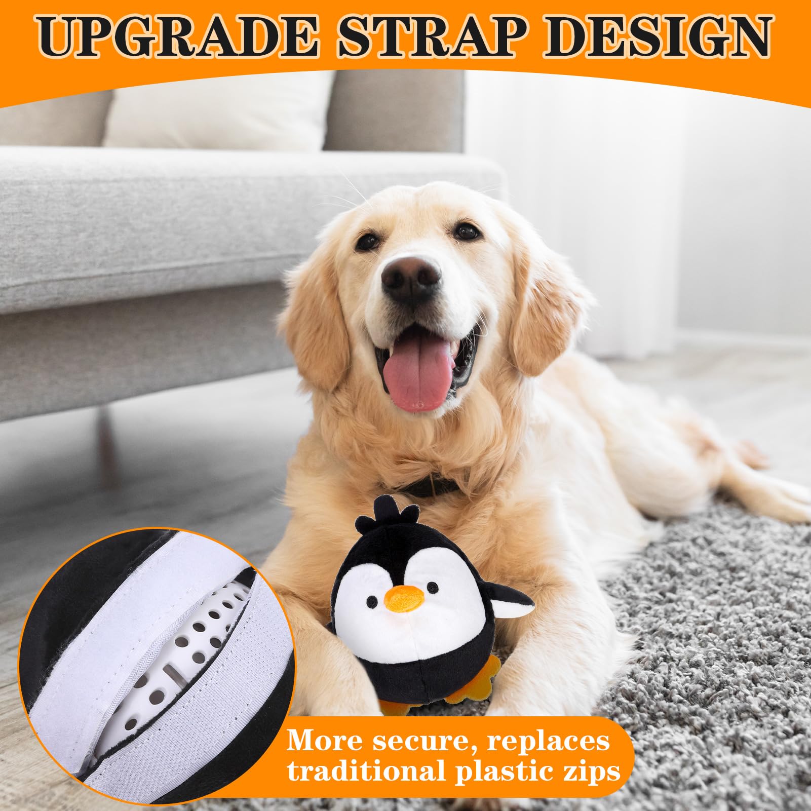 • PREMIUM MATERIAL: The penguin toy is filled with soft PP cotton, providing comfort and durability. The surface is made of high-quality composite plush fabric, offering a soft touch, making it ideal for dogs to chew on while enjoying their playtime