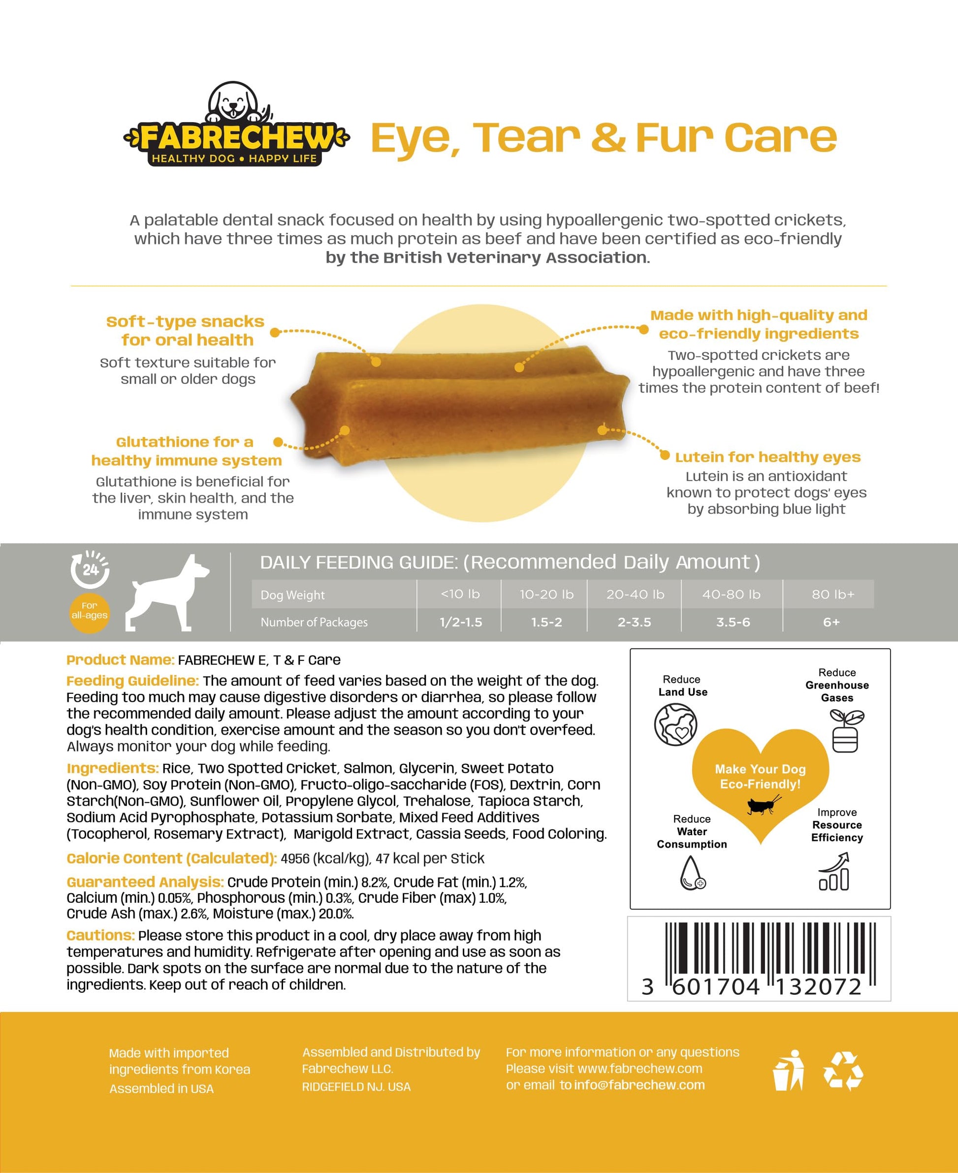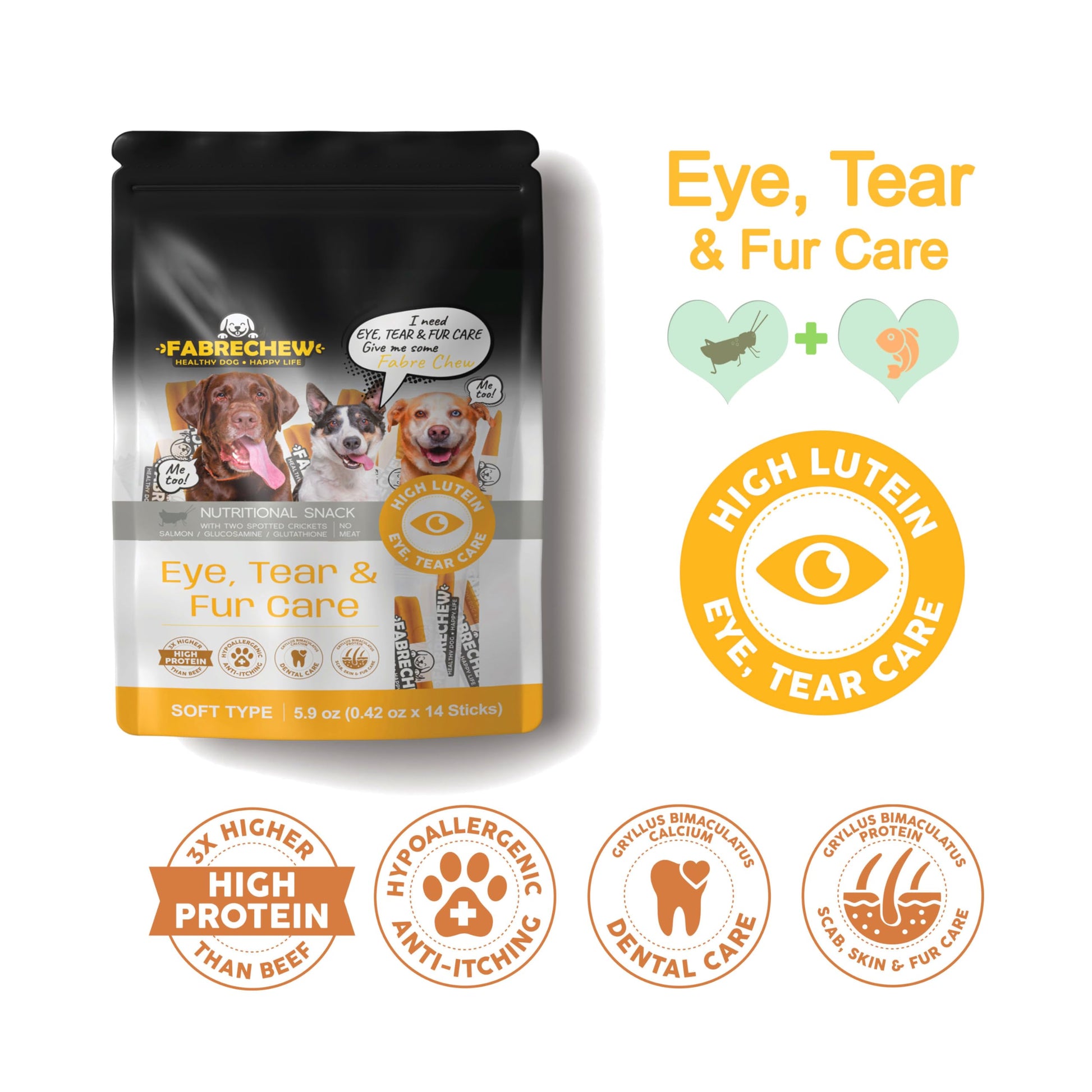 Fabrechew Yellow Eye, Tear Marks & Fur Care Dog Treats – High-Protein Dental Snacks with Cricket & Salmon Protein, Hypoallergenic, Meat Free, Supports Clear Eyes & Healthy Fur, Soft Type (14 Pcs)