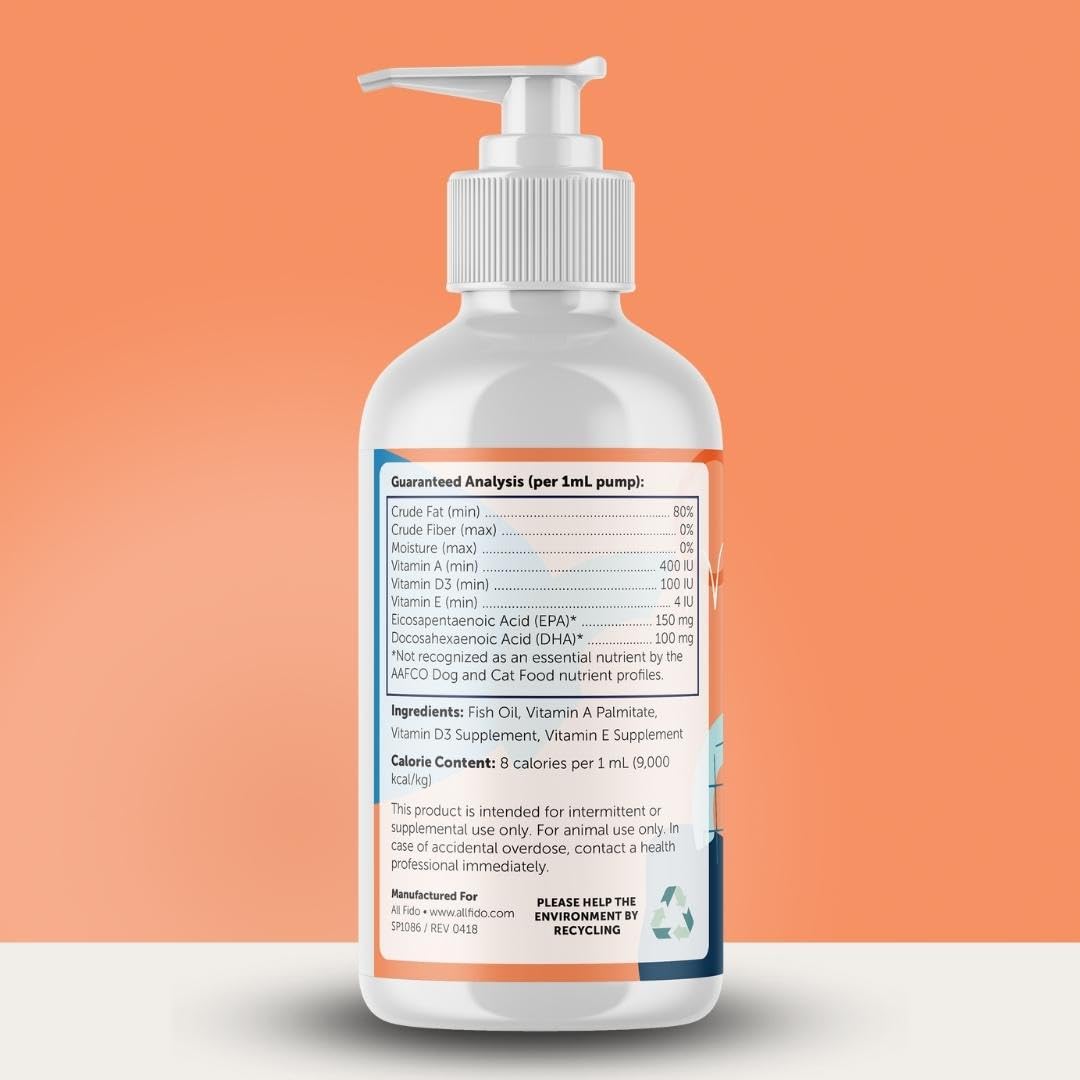 Fido Omega 3 Fish Oil for Dogs, 8 oz | EPA & DHA-Enriched for Skin, Coat, Joint & Heart Health | Tasty Supplement for All Breeds | Made in USA | Ideal for Sensitive Skin