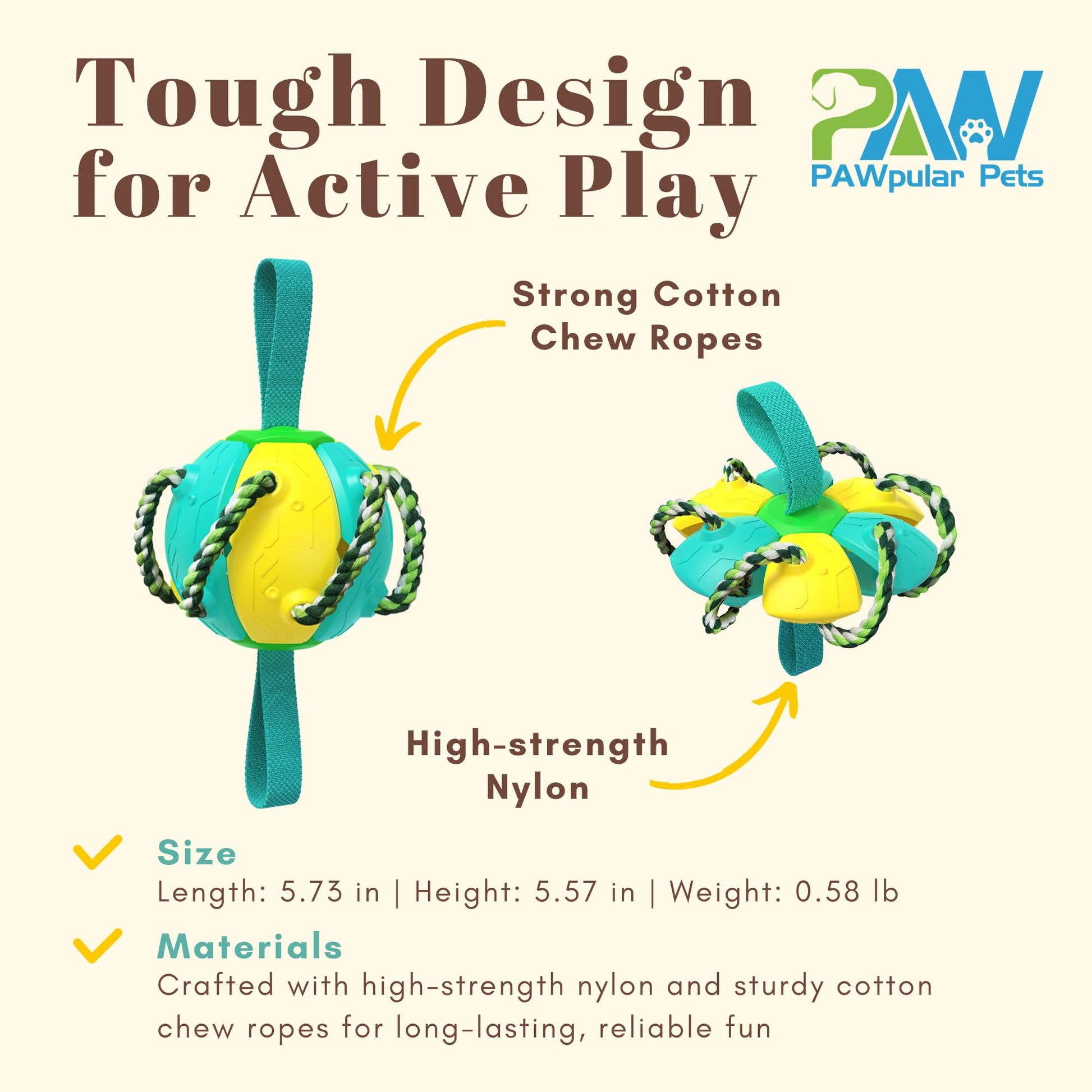 • Multi-Functional Design: This versatile toy serves as a chew toy, tug toy, flying saucer ball, and flying disc, offering endless play possibilities. Whether your dog loves tugging, fetching, or chewing, this all-in-one toy guarantees hours of fun.