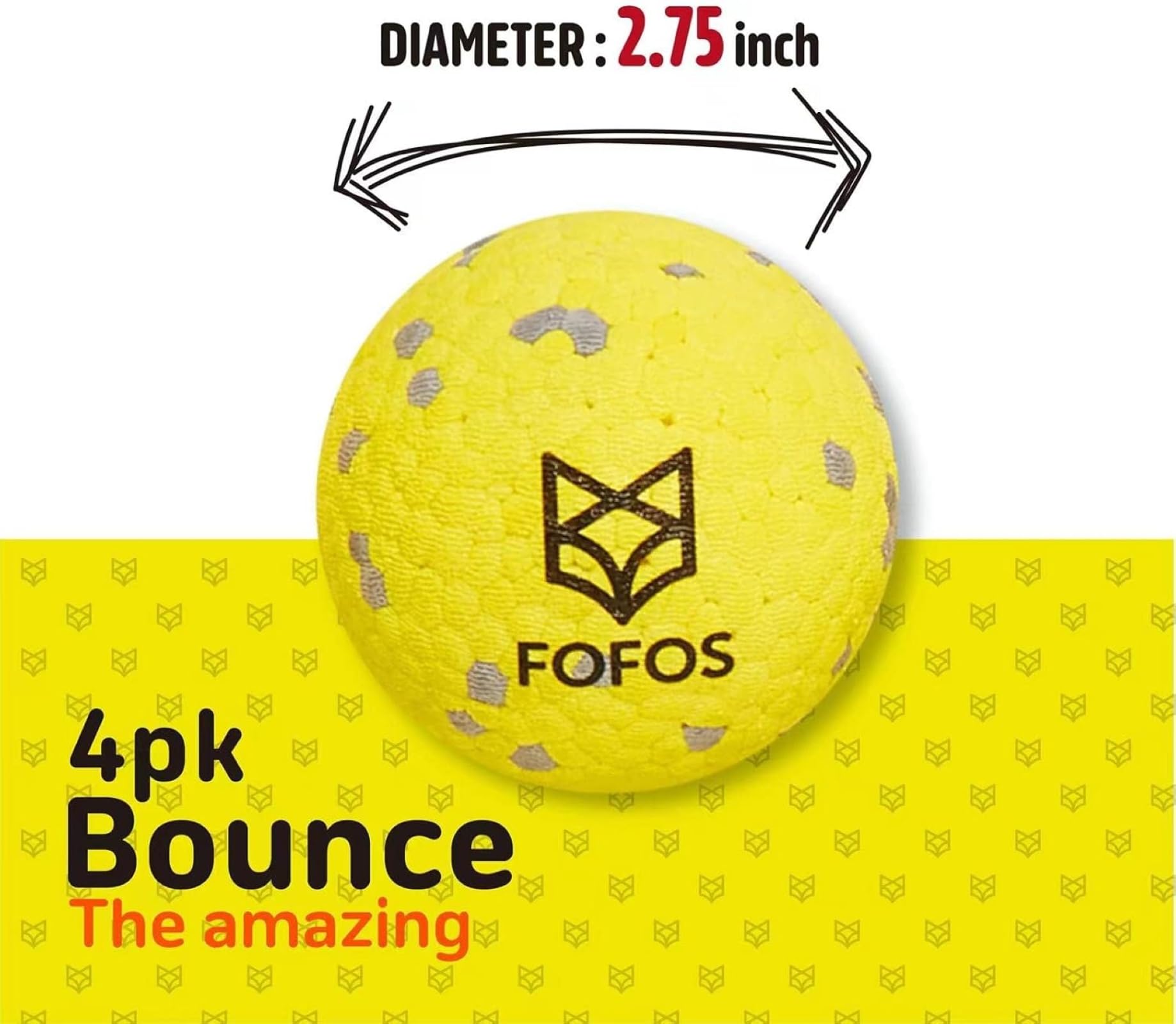 FOFOS Dog Balls Chew Toys Tennis Ball for Aggressive Chewers Teething Molar Toys Water Toy Interactive Fetch Balls Gift Set for Large Medium Dog and Puppies (4 Pack, 2.75 inch)