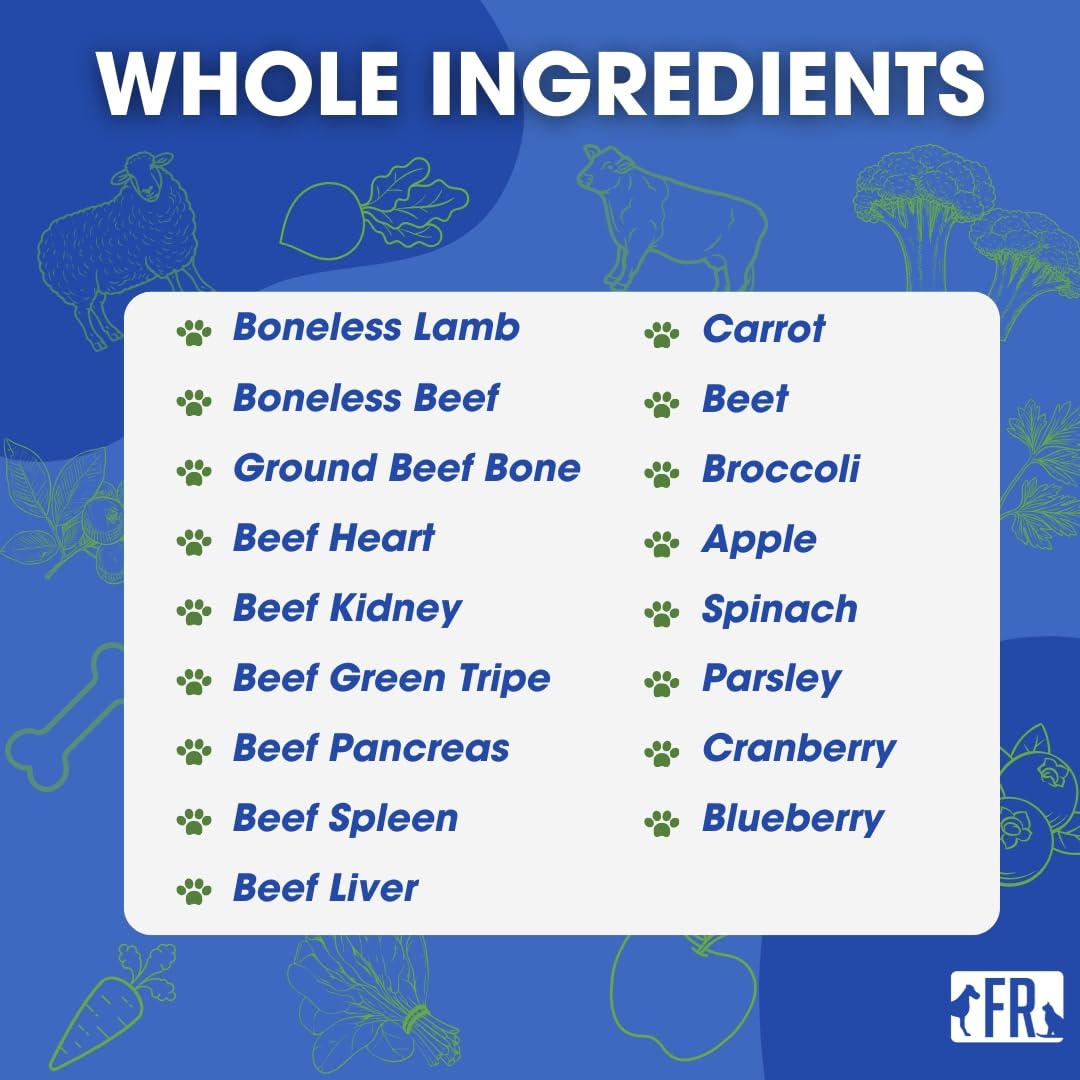- SINGLE-SOURCE PROTEIN FROM GRASS-FED LAMB – GREAT FOR DOGS WITH FOOD SENSITIVITIES: Made exclusively with high-quality lamb muscle meat and organ meats including lamb liver, heart, kidney, and tripe. This single-protein recipe is ideal for dogs with allergies to poultry, beef, or common proteins, offering clean, digestible nutrition with a taste dogs love.