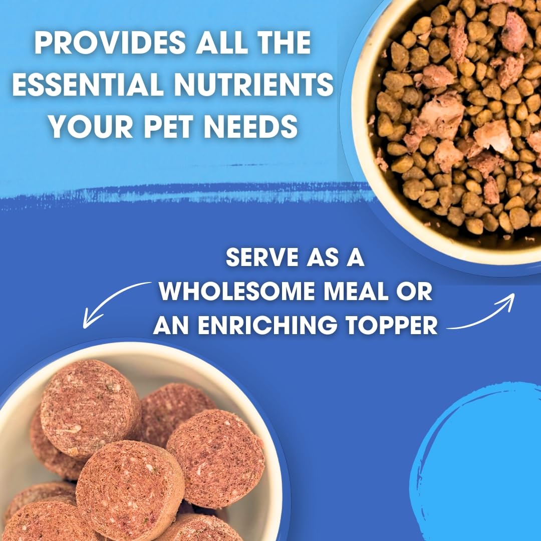 - USE AS A COMPLETE MEAL OR AS A NUTRITIONAL MIX-IN OR MEAL TOPPER: Perfect as a complete and balanced freeze-dried raw meal, or as a nutritious mix-in to enhance your dog’s current food. Simply crumble over kibble or canned food to boost protein, flavor, and nutrients—ideal for picky eaters or transitioning to a raw diet. Convenient for busy pet parents who want the benefits of raw feeding without the mess or prep work.