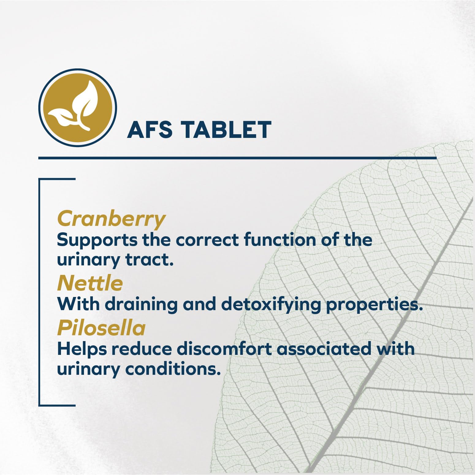 - AFS BOTANICAL TABLETS: Heart-shaped AFS tablets protect the potency of heat-sensitive natural extracts including cranberry, pilosella, and plant compounds