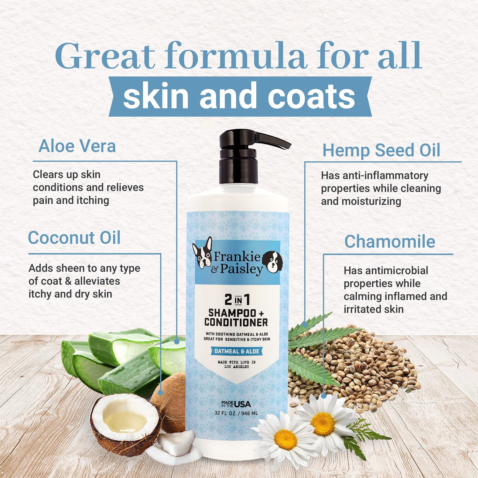 Frankie & Paisley 2-in-1 Soothing Dog Grooming Shampoo and Conditioner for Dry or Itchy Skin and Allergy Relief with Oatmeal and Natural Aloe Vera - 32 fl. Oz