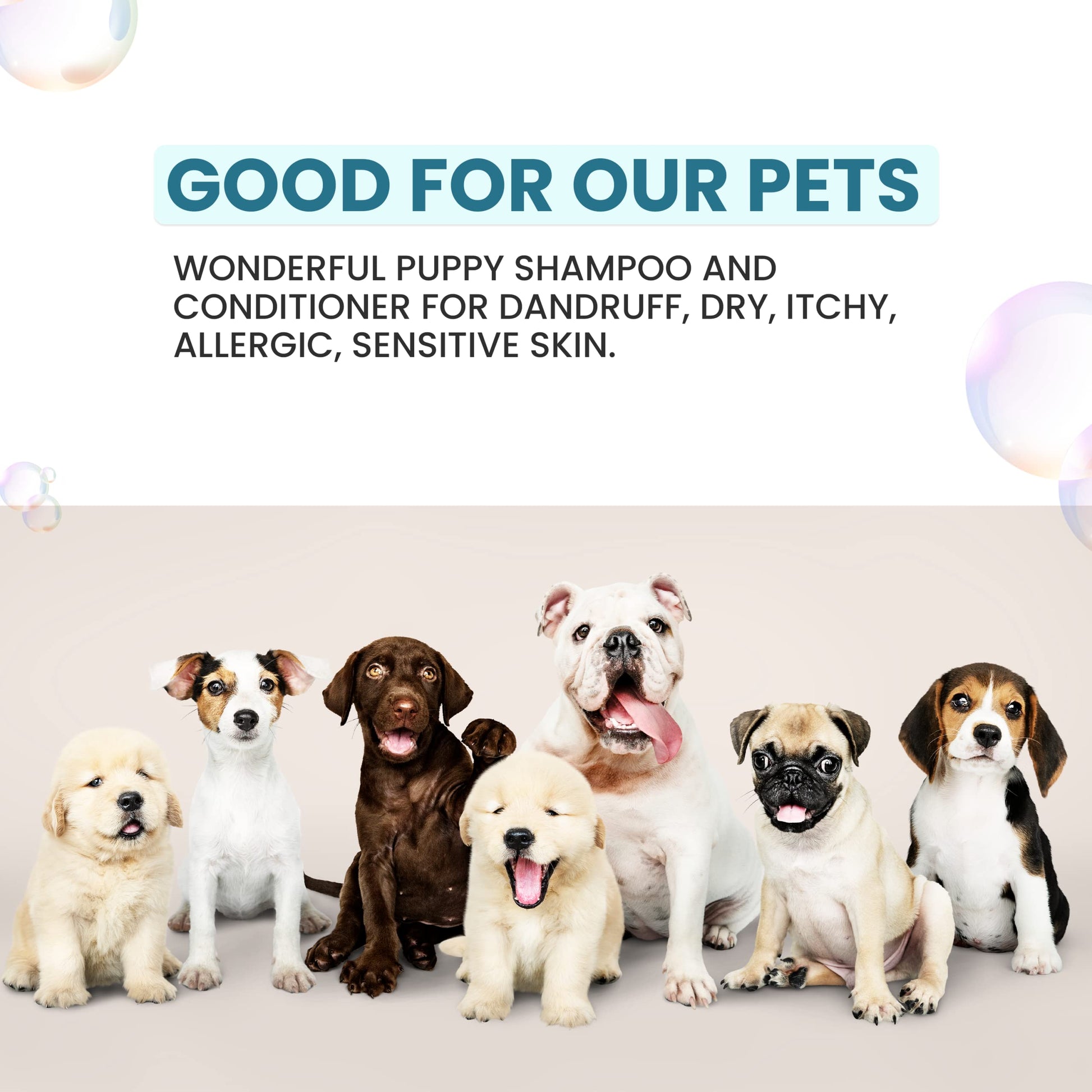 - Soothing Formula—Designed as a sensitive dog shampoo, it works as a dog shampoo for allergies and itching while also functioning as a gentle dog conditioner. Ideal for dog sensitive skin shampoo needs and for every dog wash, making everyday washing and bathing a happy pup experience.
